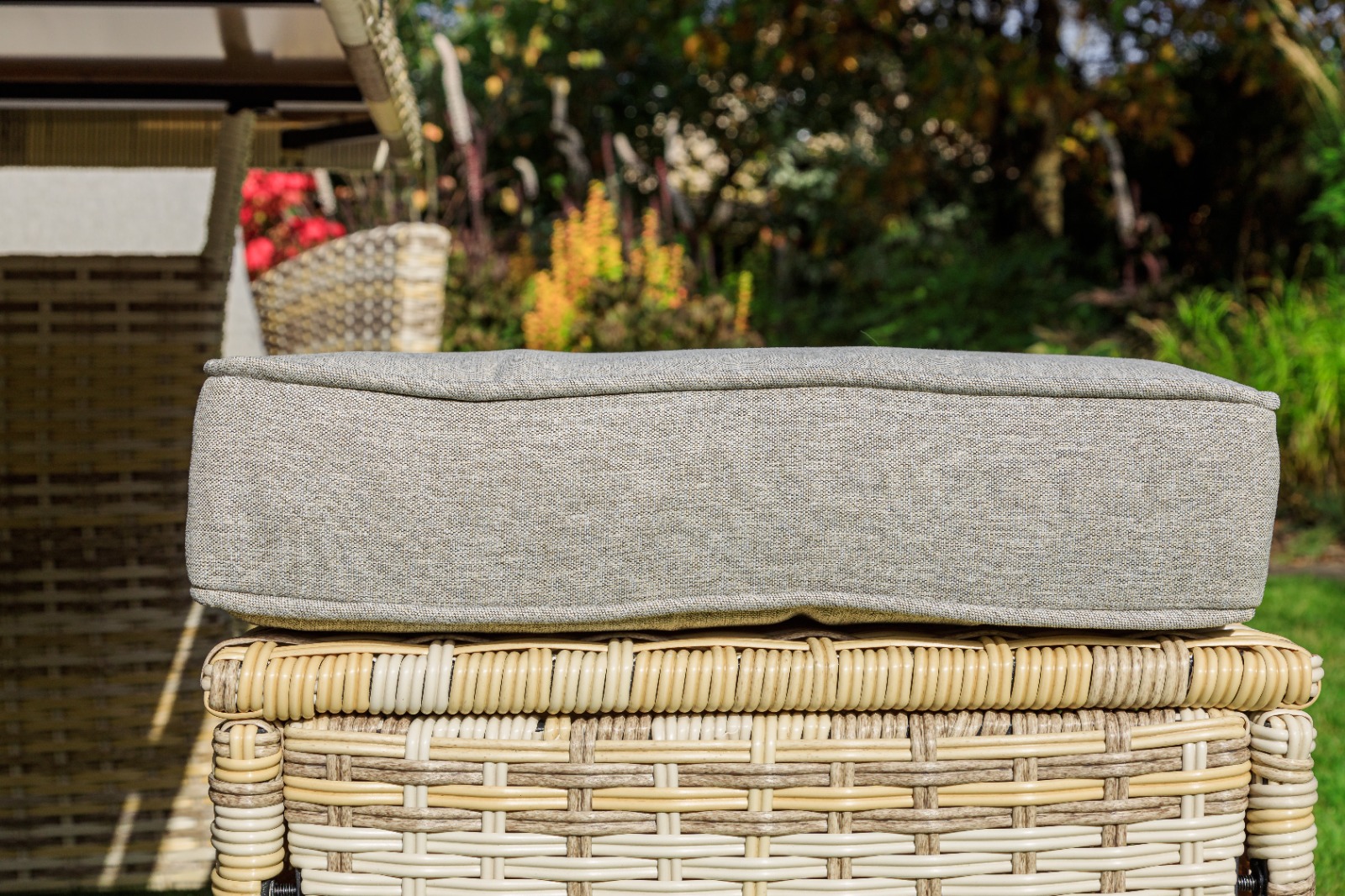 Эта мягкая подушка-сидение предназначена для использования с пуфами из комплектов ZORRO и ZOYA, что подчеркивает ее безупречную совместимость и гармонию с общей эстетикой. Она является съемным аксессуаром, который позволяет легко обновить внешний вид вашей садовой мебели или обеспечить удобную замену. Благодаря своему лаконичному дизайну и нейтральному цвету, она легко впишется в любое открытое пространство, добавляя ему уюта и практичности.Практичность и долговечность