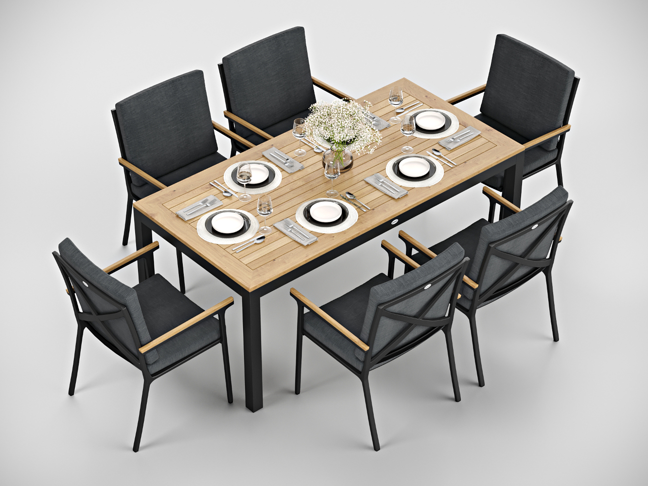 • Цвет:  каркас темно-серый карбон / столешница тиковые планки