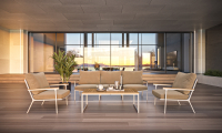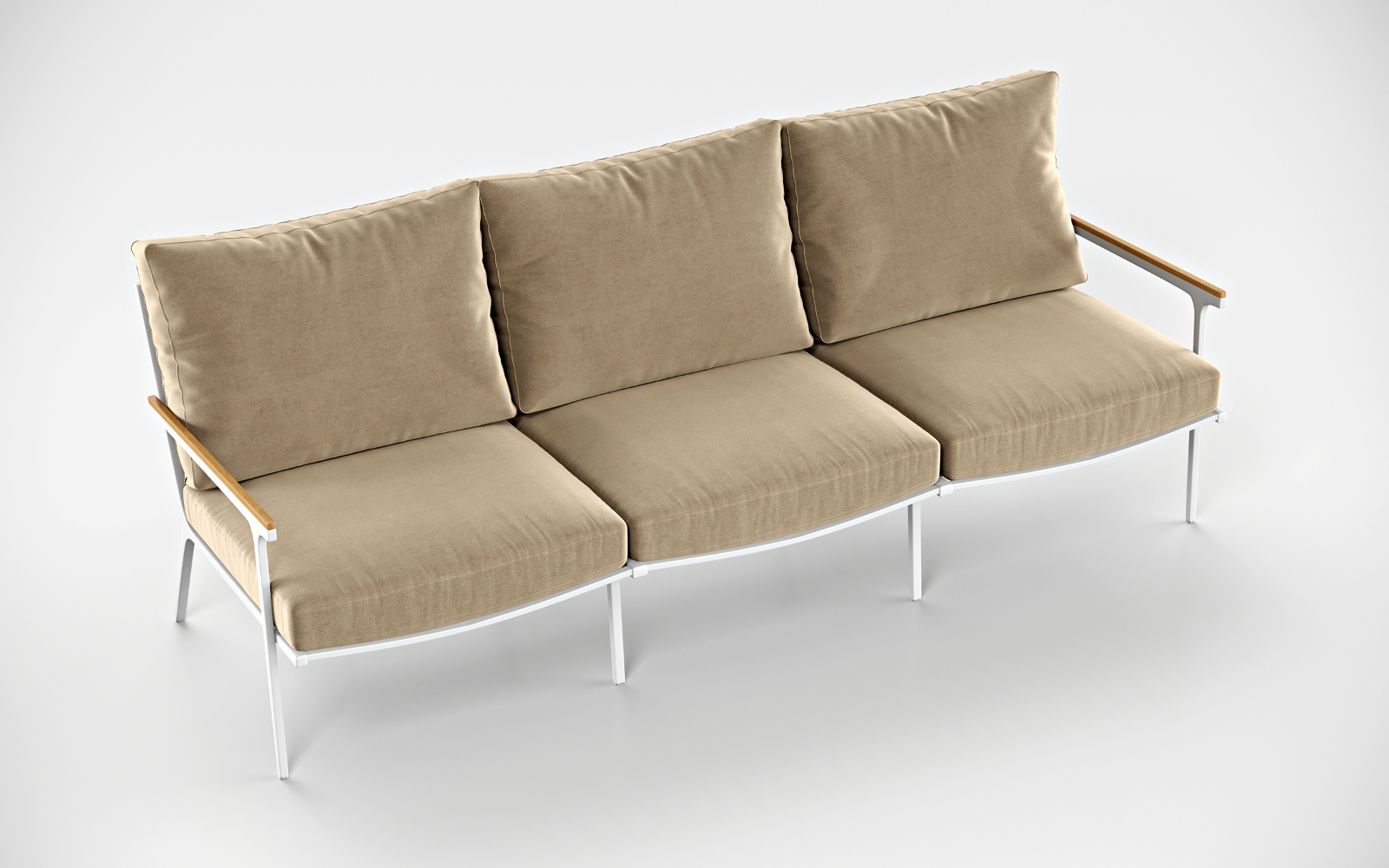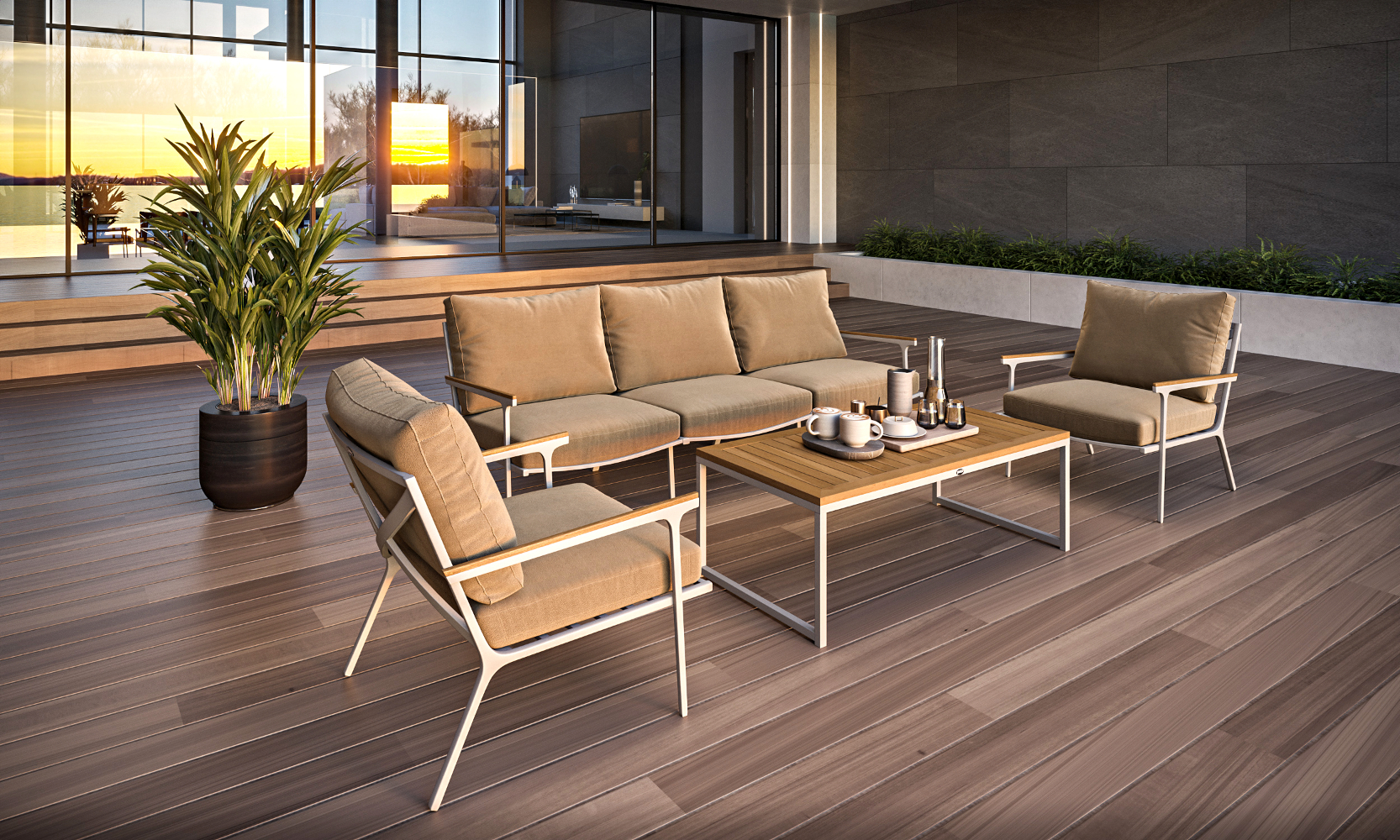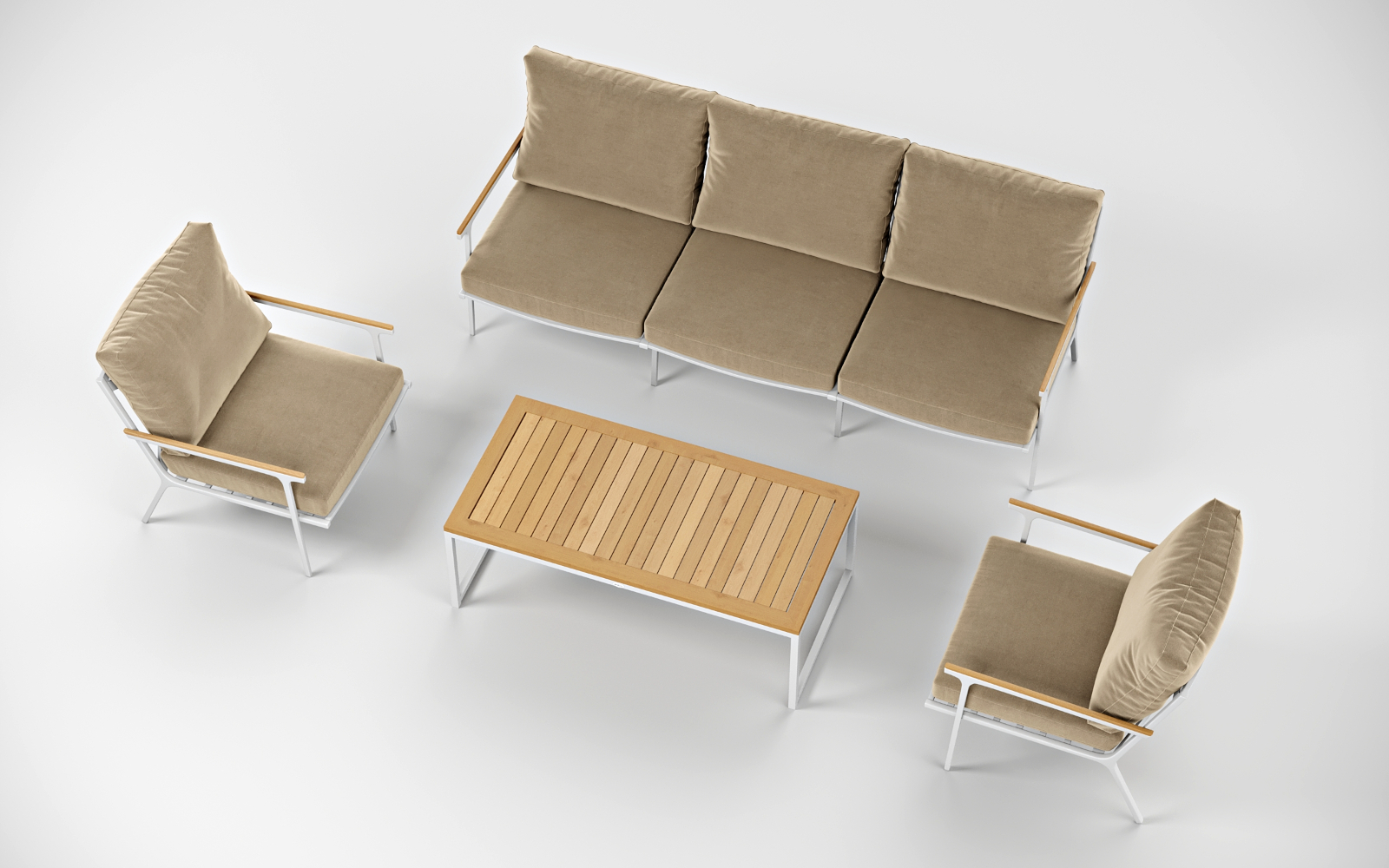 Premium Calma long – винтажная лаунж зона с трехместным диваном в премиальном исполнении. Непроходящая классика. Правильные линии, визуальная легкость и утонченность. Большие сиденья с удобными подушками из уличной ткани (олефин). Ткань не выгорает под воздействием прямых солнечных лучей и обладает хорошими водоотталкивающими свойствами. Чехлы подушек съемные. Планки столешницы и подлокотники дивана и кресел выполнены из благородного тика. Для вашей террасы или зоны патио.