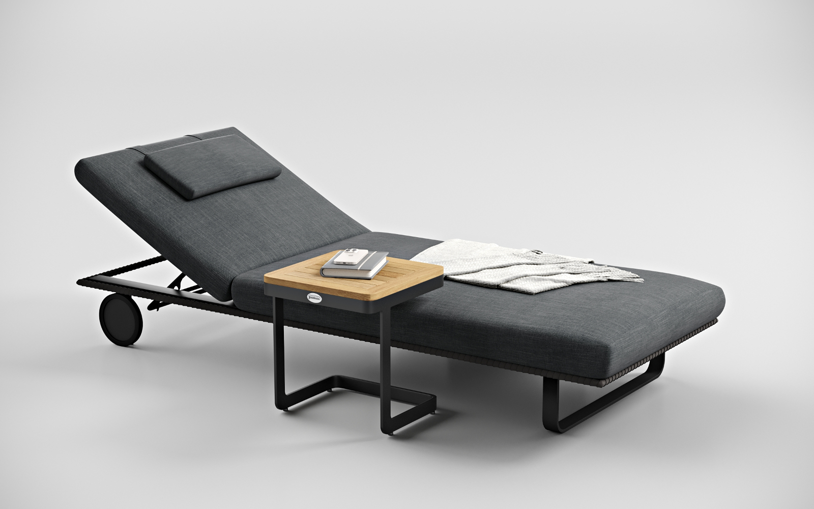 • Материалы: всесезонный алюминий, уличная ткань (олефин), веревочное плетение вокруг каркаса, чехол подушки съёмный, на "молнии", колеса для смены локации