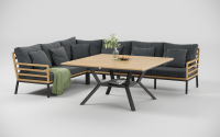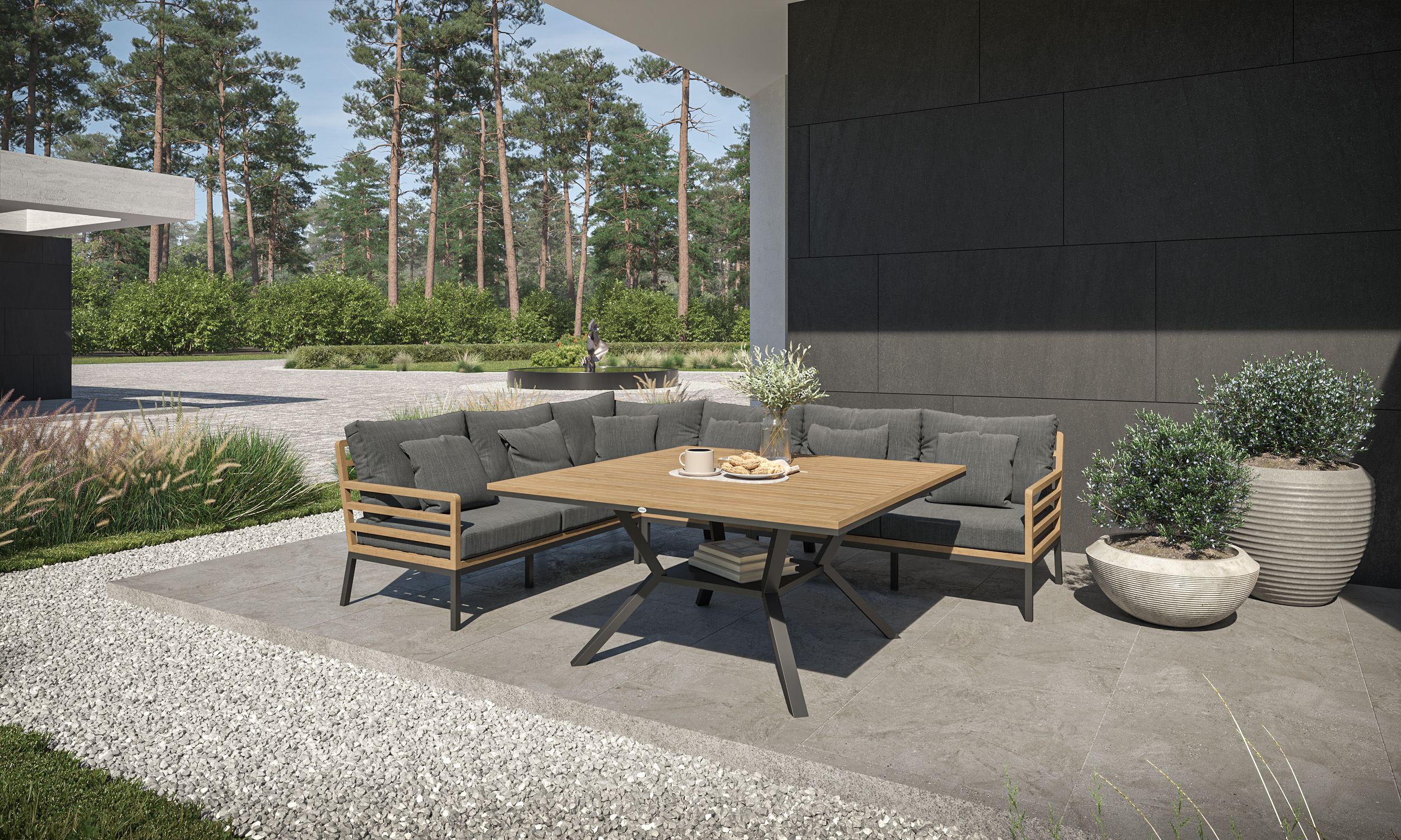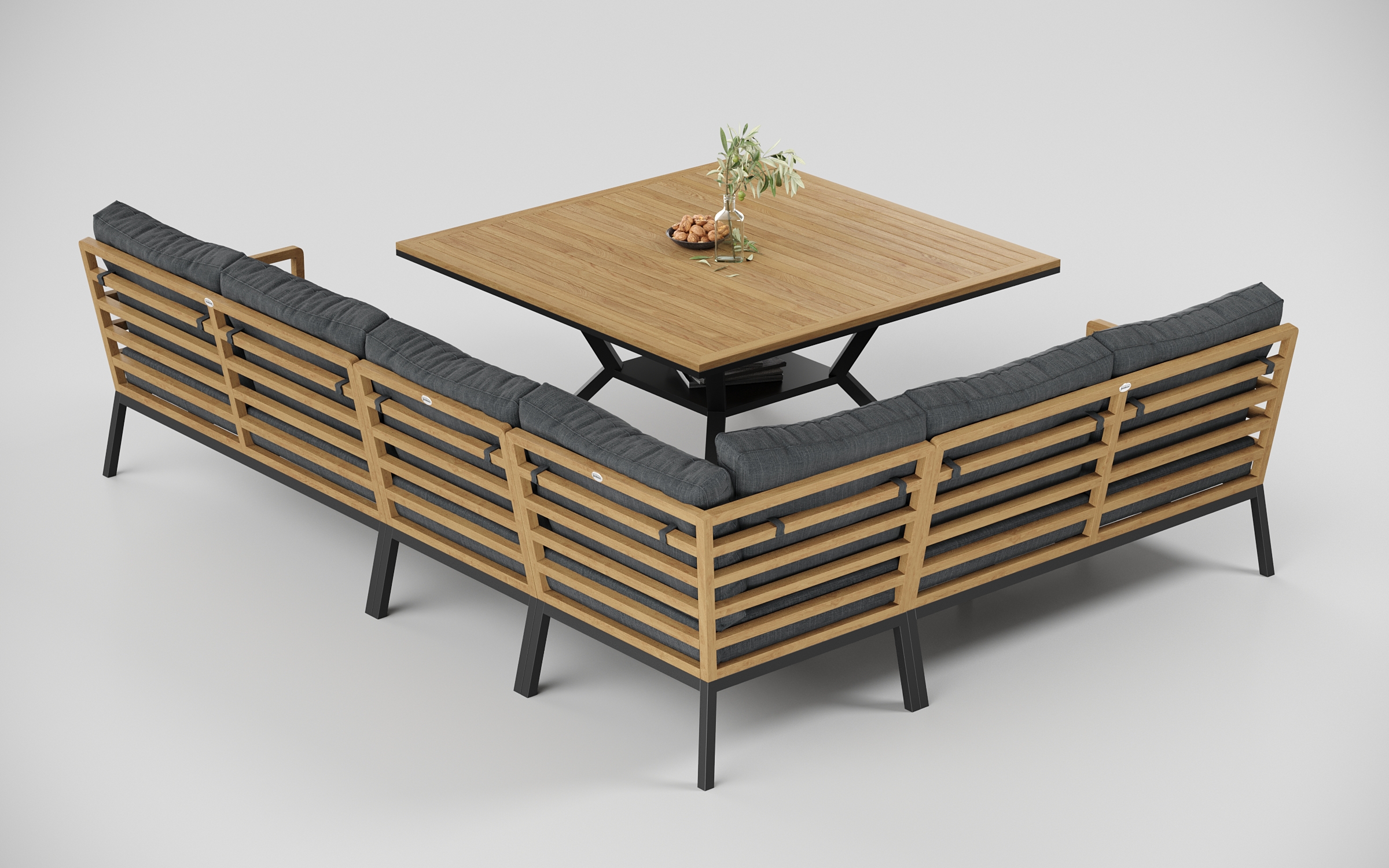 Premium PatioCalma ML – винтажная классика с 4 диванами в современном стиле. Непроходящая мода. Возможность расположения модулей в разных вариантах. Захватывающая комбинация прочного каркаса из тика и надежного подножья из алюминия. Удобные сиденья с подушками из премиальной уличной ткани. Ткань устойчива к ультрафиолетовому излучению, водостойкая. Чехлы подушек съемные. Комплект с красивыми дизайном и комфортом в использовании.