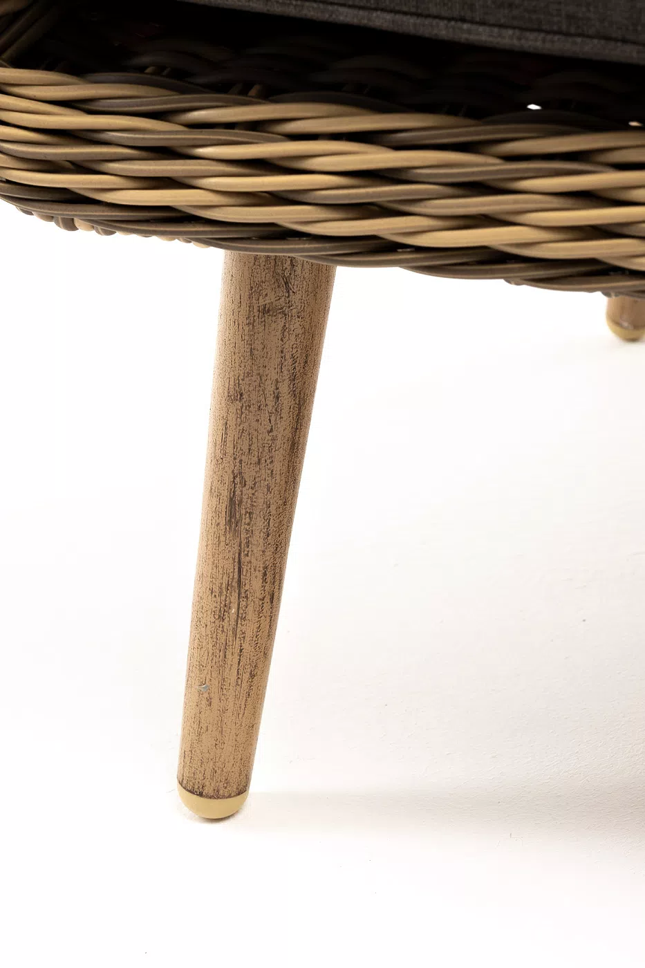 Ее дополняет ручное плетение, при изготовлении которого используется искусственный ротанг.