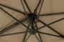 Опора зонта толщиной 105×65 мм состоит из двух частей: нижней и верхней. Конструкция купола состоит из 8 длинных спиц (207 см - 4 шт. и 70 см - 4 шт.). Высота от земли до нижнего края купола - 215 см.