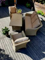 Роза софа set — это классический набор уличной мебели. Искусственный ротанг имеет приятные тактильные ощущения, цвет Капучино освежает и великолепно дополняет любое пространство на открытой площадке. Это может быть терраса загородного дома, отдельно стоящая открытая беседка или брутальный домик для гриля, комната отдыха в бане и сауне. Благодаря современным технологичным материалам у данного набора широкий спектр использования.