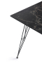 Столешница выполнена из современного высококачественного монолитного компакт-пластик HPL, толщиной 12 мм с цветом под черный мрамор. Материал устойчив к высоким температурам, попаданию влаги и может использоваться и на кухне. Подстолье изготовлено из крашеного металла в цвете «Мокрый асфальт».