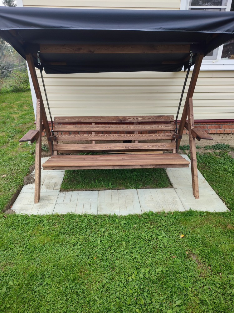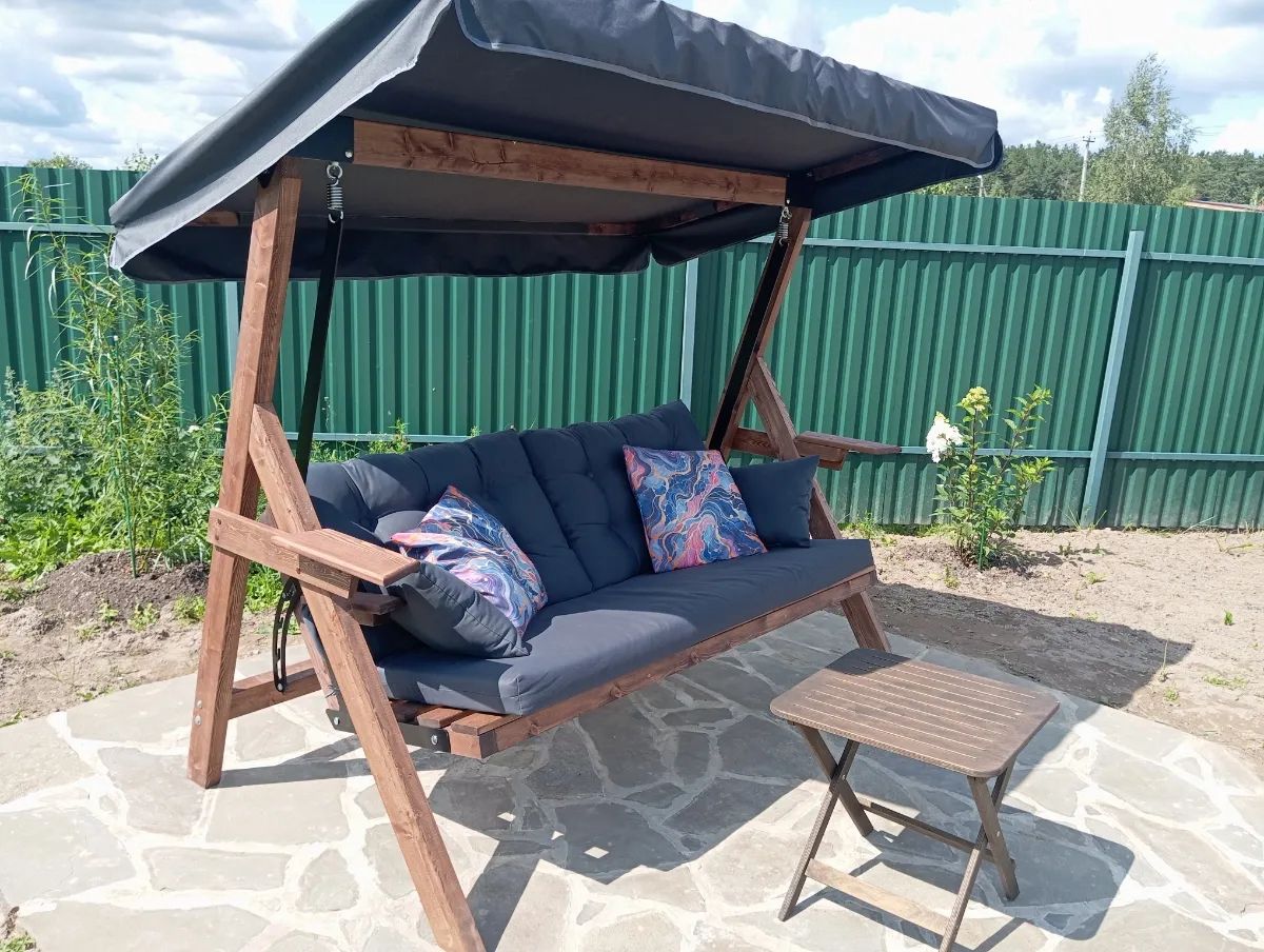 Каркас выполнен из массива дерева — прочного, надёжного и приятного на ощупь. Натуральная фактура придаёт конструкции благородный, тёплый вид, а лаконичный дизайн легко вписывается как в классическое, так и в современное оформление сада.