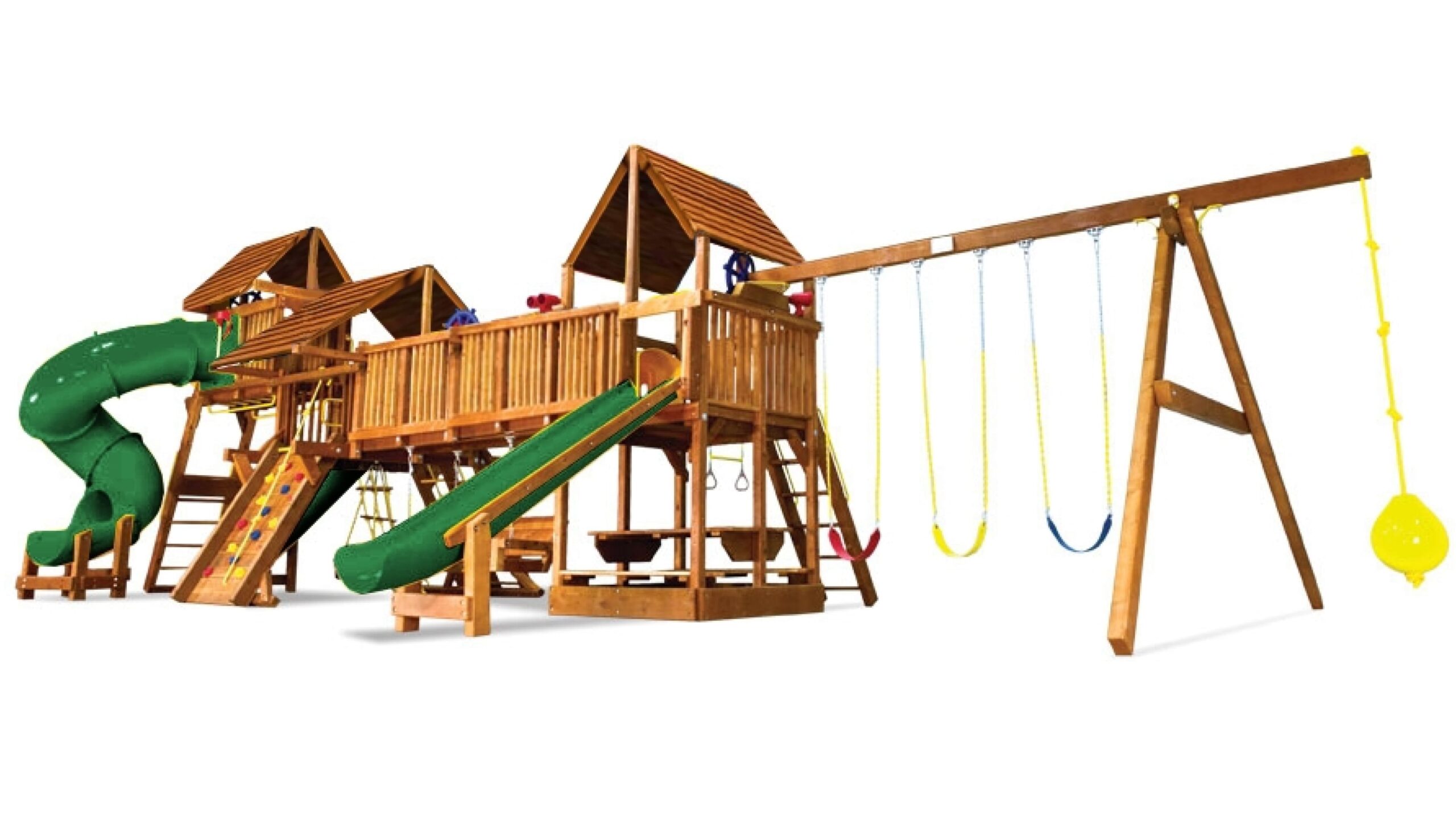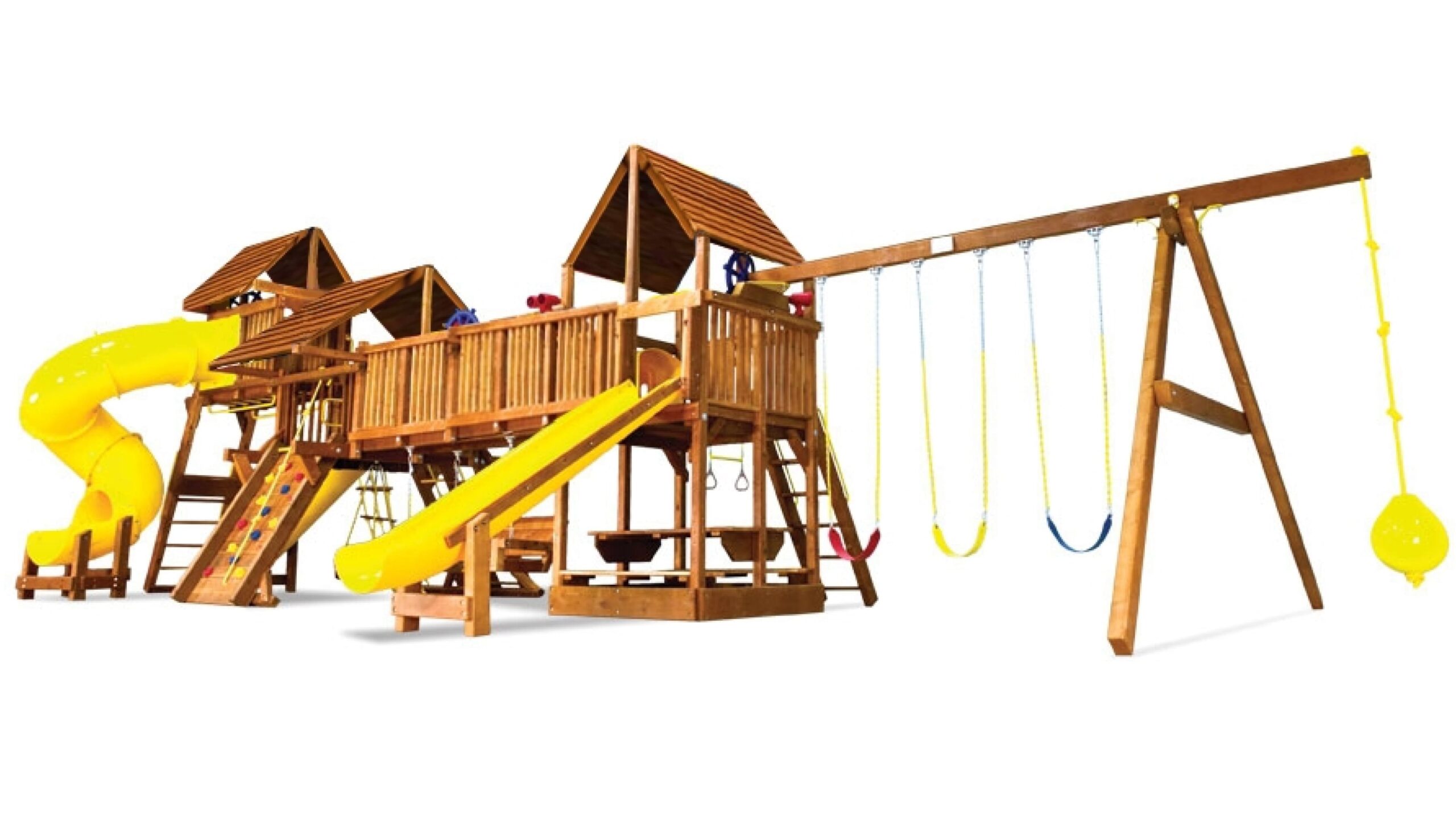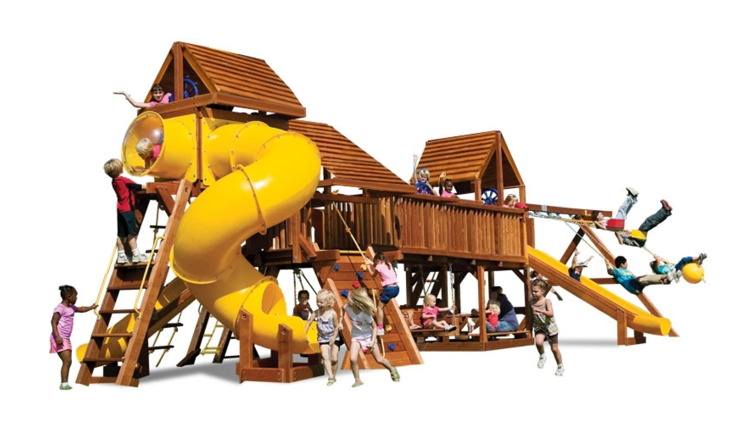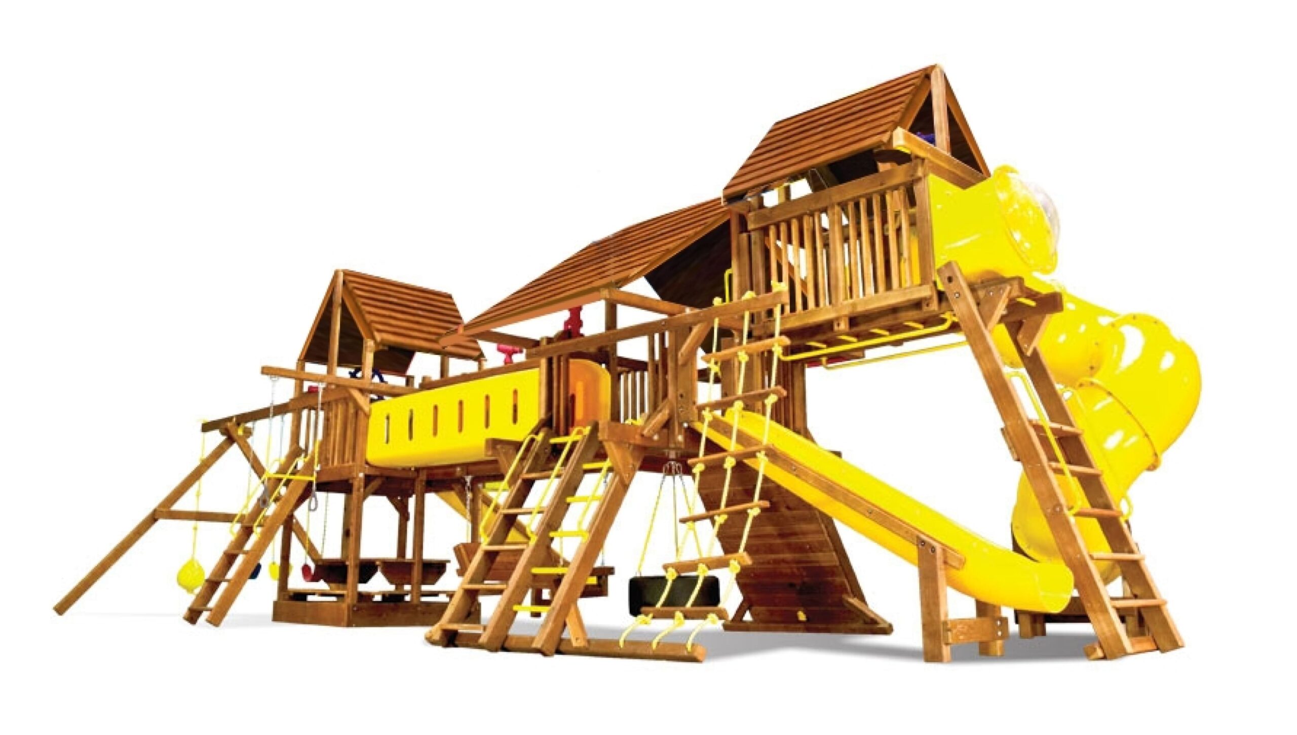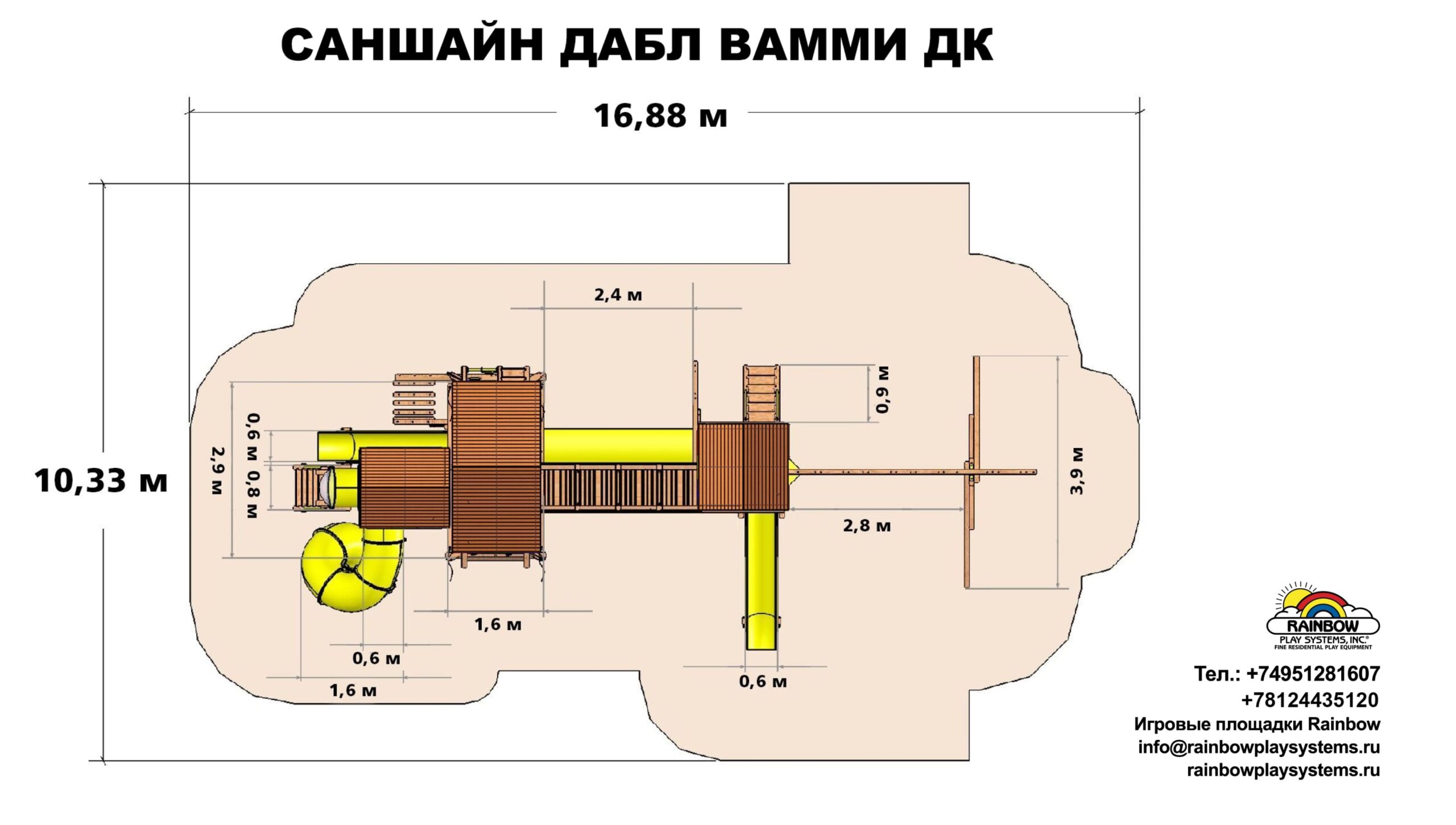 Детская площадка Саншайн Дабл Вамми – это одно из лучших решений, придуманных в мировом производстве детского игрового оборудования. Дабл Вамми это сразу две площадки (формы Кастл и Клубхаус) соединенным между собой деревянным мостом и туннелем из плотного пластика. При этом данный комплекс имеет оптимальные габаритные размеры, которые позволяют разместить его на сравнительно небольшом участке. Саншайн Дабл Вамми выбирают застройщики, архитекторы, компании по благоустройству парков. Также данный комплекс подойдет для установки на территории частного загородного дома.