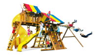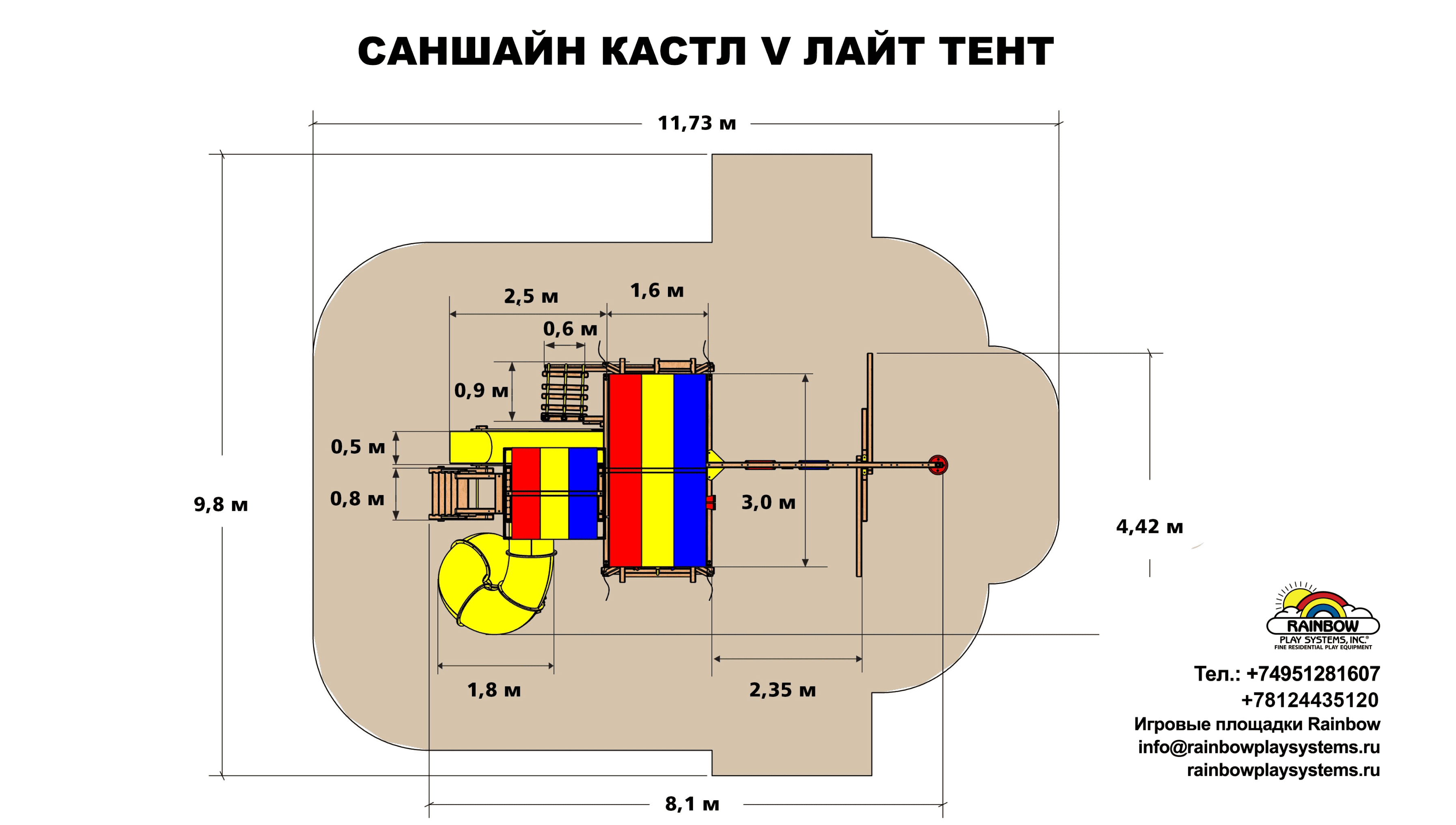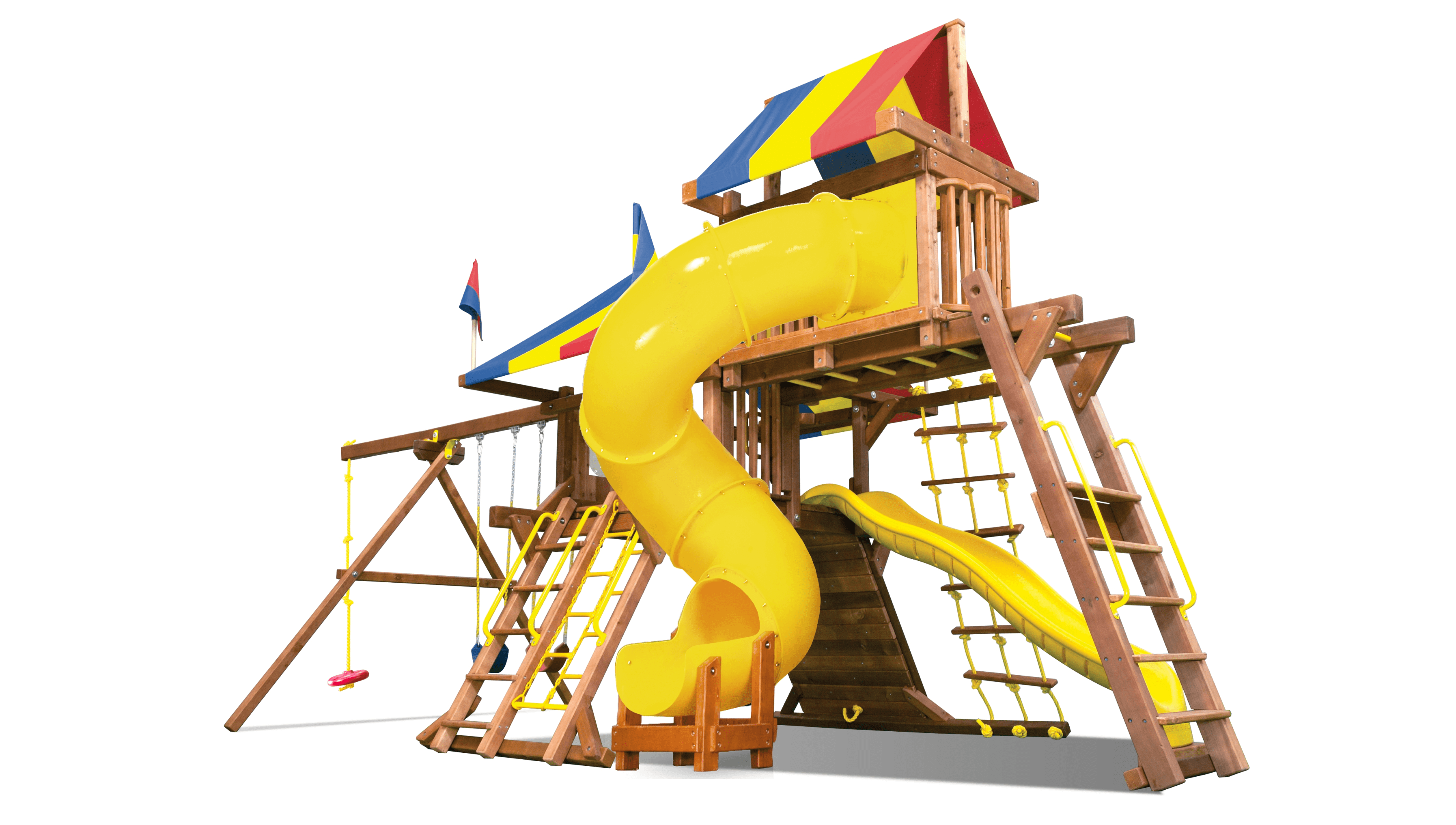 Саншайн Кастл V Лайт Тент это максимальная комплектация данного комплекса с тентовыми крышами. Здесь есть все для, что только дети могут себе вообразить. Дизайн Саншайн Кастла V отлично подойдет как загородному участку, так и общественному парку. Все блоки сделаны максимально безопасно и надежно. Также всегда можно будет еще разнообразить детям игры, например докупив другие качели или даже повесить под рукоходом снаряжение для тренировок ниндзя!