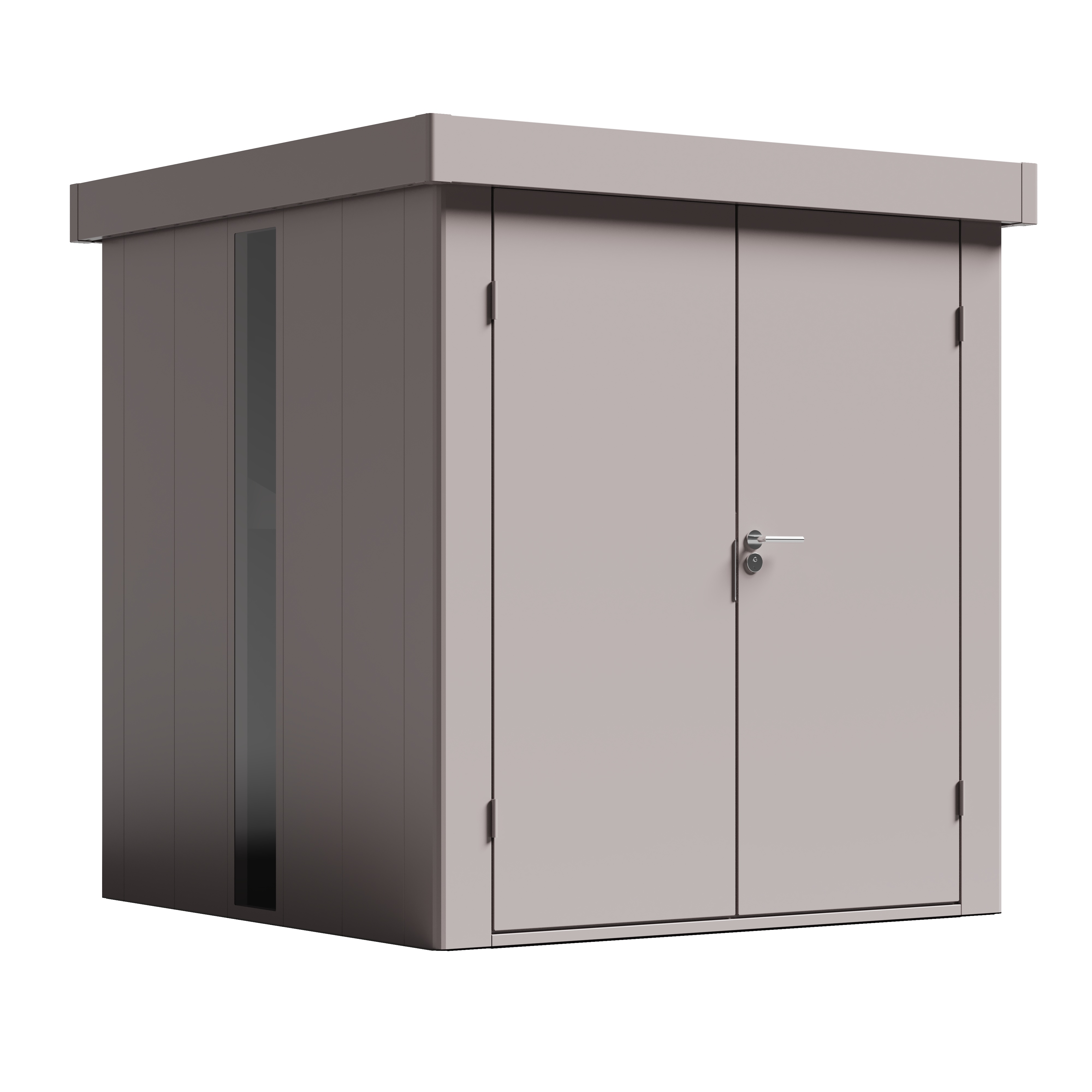 Сборный металлический сарай серии Neo размером 2*2 м в версии лайт – самый доступный по стоимости представитель серии сараев Neo. В комплектации лайт нет пола в виде террасной доски, освещения и внутренних панелей обшивки. При этом сохранен весь функционал изделия.К вашему выбору 3 базовых цвета стандартного исполнения. В случаях заказа под проект, возможна окраска в индивидуальные цвета согласно RAL.