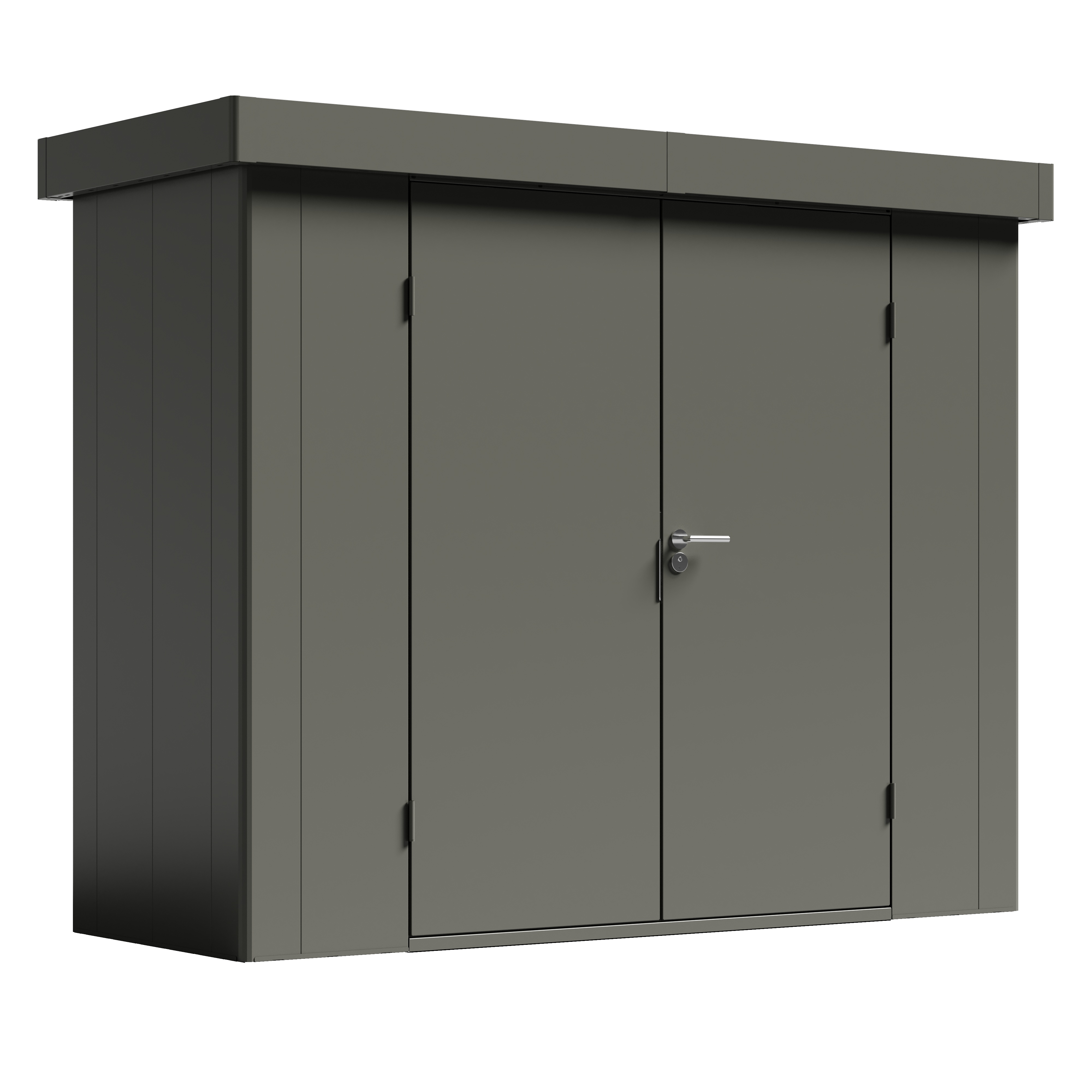 Сборный металлический сарай серии Neo размером 3*1 м – самый миниатюрный представитель серии сараев Neo. Там, где нет необходимости в большом хозблоке, Neo 3*1 просто идеален! При этом металлический сарай Neo 3*1 имеет широкий спектр функциональности: хранение дров и банных веников; складирование инструментов и приспособлений для ухода за садом; размещение велосипедов, самокатов и другого спортивного инвентаря. К вашему выбору 3 базовых цвета стандартного исполнения. В случаях заказа под проект, возможна окраска в индивидуальные цвета согласно RAL. Внимание! Индивидуальный заказ может привести к изменению стоимости изделия и увеличению сроков производства. Сборный металлический сарай(хозблок) серии Neo 3*1 представляет из себя модульную конструкцию, состоящую из обшивки, несущих и соединительных элементов, 2-х дверей, полок и комплекта кронштейнов с крючками. В базовую версию сарая Neo 3*1 не входят внутренние панели обшивки и пол из ДПК. При необходимости вы можете дополнить стандартную версию сборного металлического сарая Neo 3*1 необходимыми опциями: полками, панелями со стеклом, полом из ДПК, внутренними панелями обшивки, комплектом с кашпо, светодиодной подсветкой фасадов. Являясь лидером в металлообработке, наша компания ориентируется на высочайшее качество по разумным ценам! Все наши изделия наполнены позитивными эмоциями и любовью к собственным творениям! Нет более элегантного, удобного и практичного решения! Выбери свой Neo!