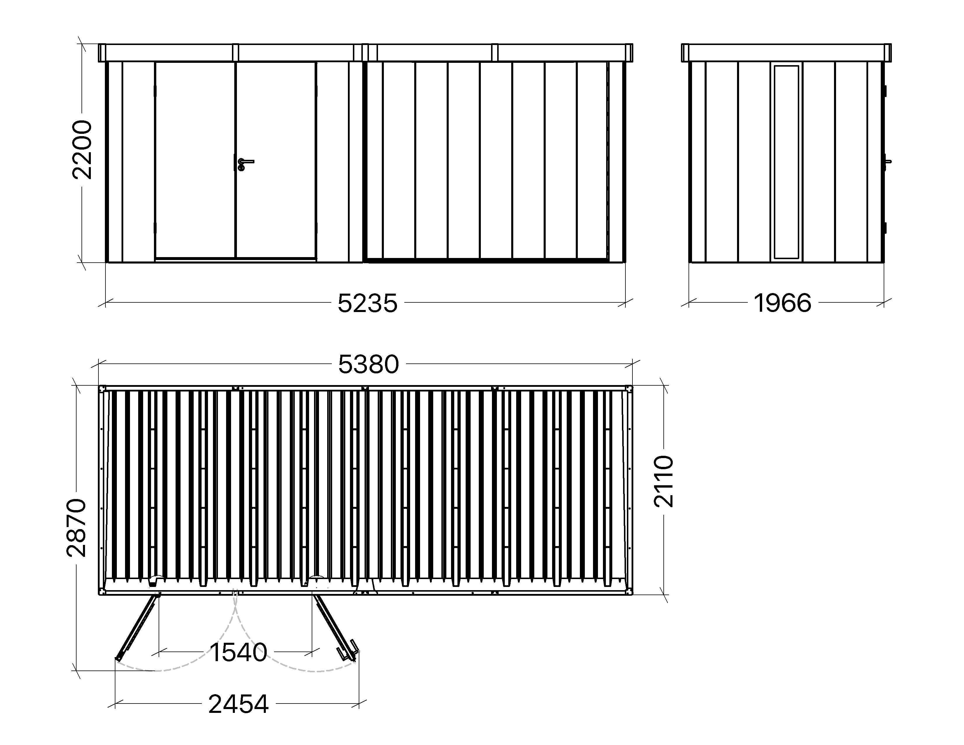 Сборный сарай серии Neo представляет из себя модульную конструкцию, состоящую из обшивки, несущих и соединительных элементов, панели со стеклом, 2-х дверей, полок, пола и элементов освещения. Благодаря приставному крылу, вы получаете дополнительное пространство для хранения габаритных предметов загородной жизни – таких, как мотоцикл, мопед, квадроцикл, гидроцикл и т.д.