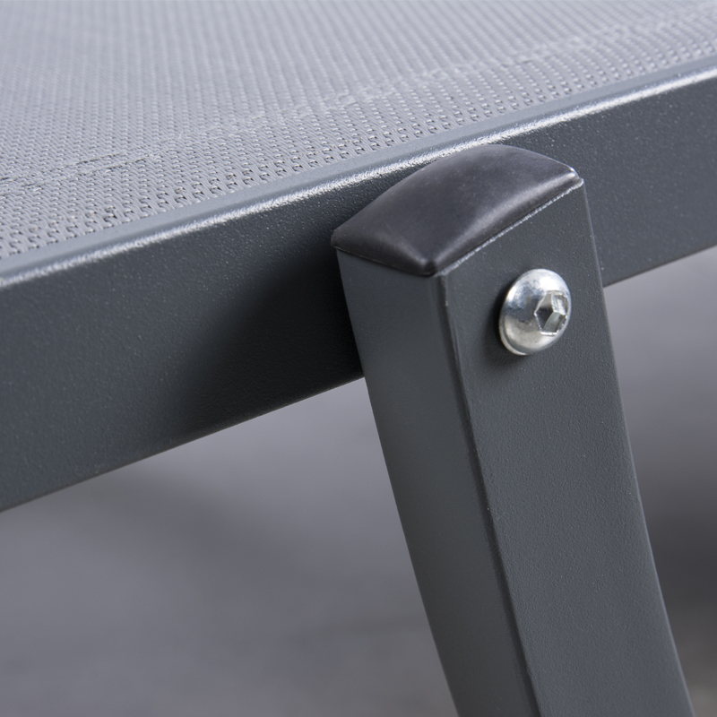 Материал: Текстилен - плетенная сетка из полиэстеровой нити с виниловым покрытием. Один из самых современных материалов для садовой мебели. Не впитывает влагу, пропускает воздух, быстро сохнет. Устойчив к ультрафиолетовому солнечному излучению, кремам для загара.