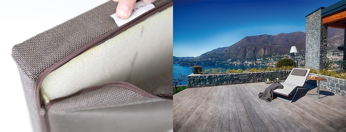 - Обивка выполнена батилина ведущего французского производителя Serge Ferrari. Эта ткань не боится влаги, дышит, легко моется, быстро сохнет и остается прохладной даже под палящими лучами солнца. Ее преимущество: высокая прочность и износостойкость, устойчивость к ультрафиолету, невосприимчивость к плесени и грибкам. Плотность батилина - 450 г/м². Испытание на истирание - 120 тыс. циклов. Предельные рабочие температуры: -30°С/+70°С. Все это обеспечивают уникальную долговечность шезлонга.