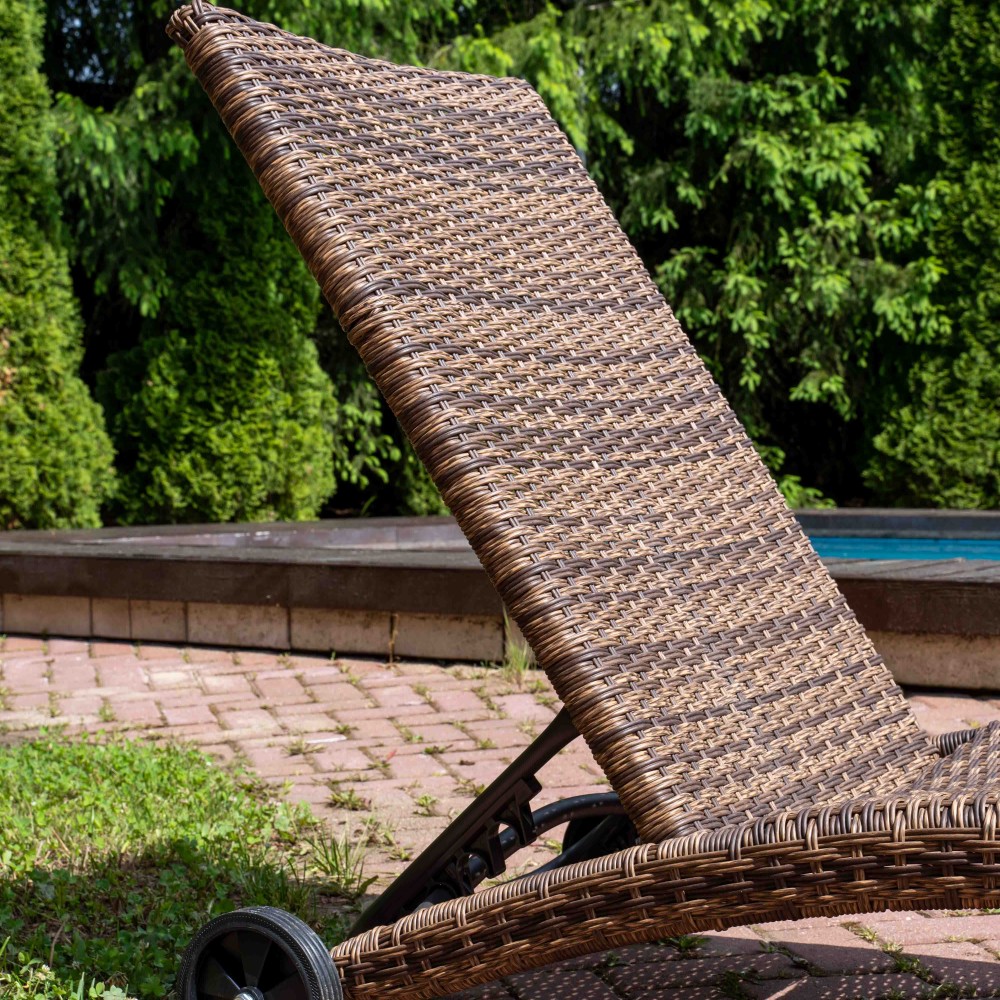 Коричневый цвет шезлонга гармонично вписывается в различные интерьерные и экстерьерные решения, создавая уютную атмосферу. Благодаря наличию колесиков, шезлонг легко перемещать, что делает его использование еще более удобным.