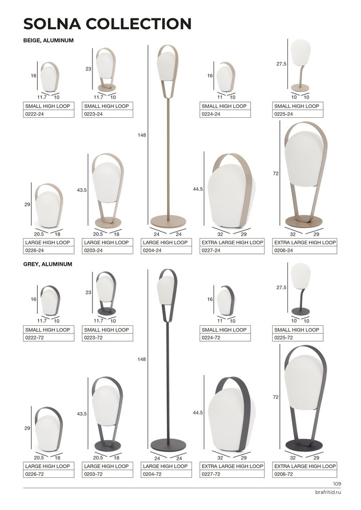 Коллекция Solna состоит из серии мобильных наружных светодиодных ламп различных размеров. В среднем требуется от 3 до 4 часов, чтобы полностью зарядить каждую лампу с помощью простого USB-кабеля и (в зависимости от интенсивности света). Время автономной работы каждой лампы составляет от 8 до 10 часов.