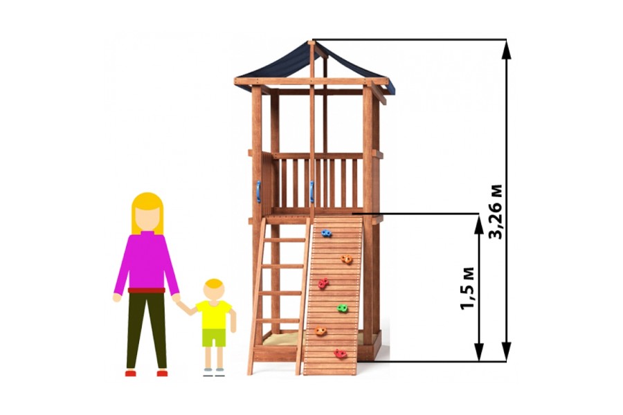 Материал игрового комплекса - лесоматериалы лиственных и хвойных пород, который сушится по специальной технологии, что позволяет не растрескиваться корпусу и несущим конструкциям.