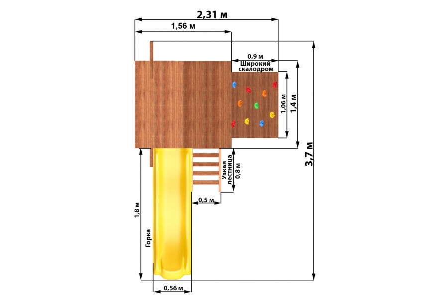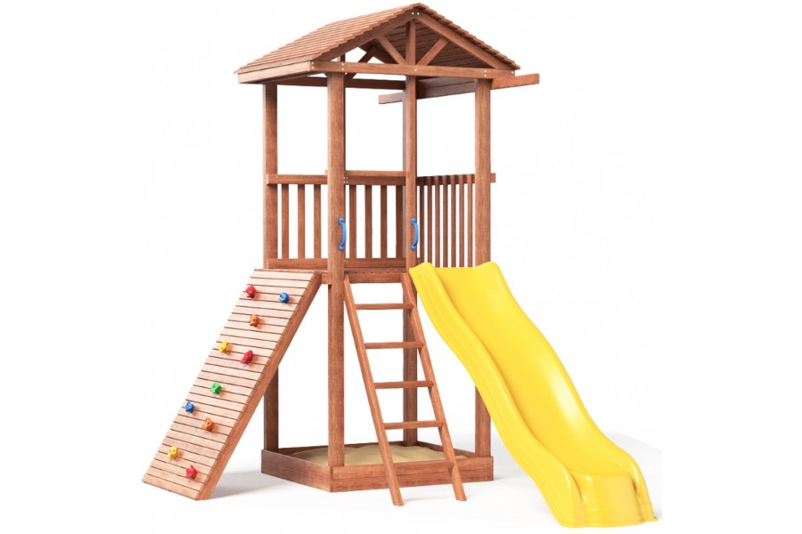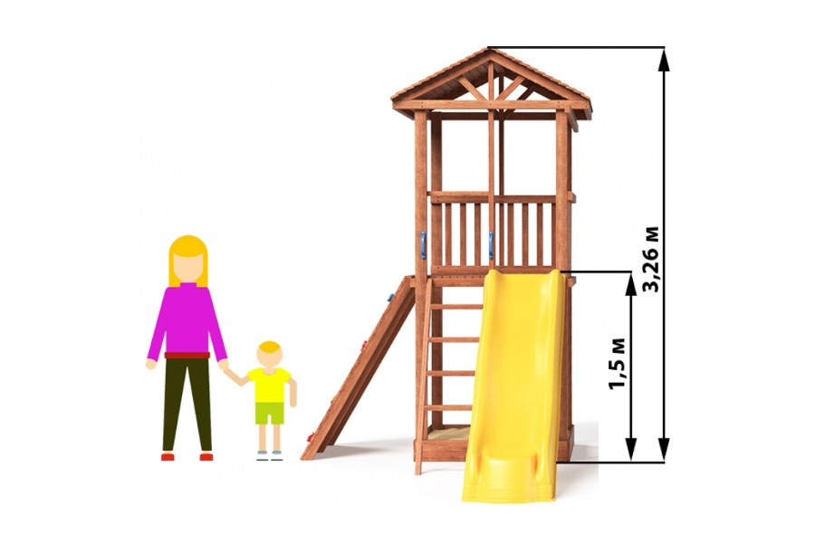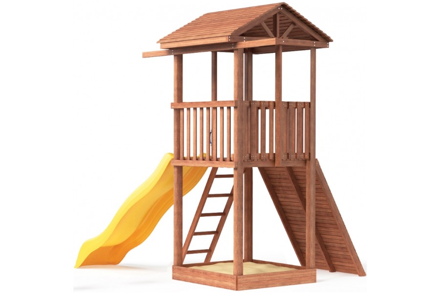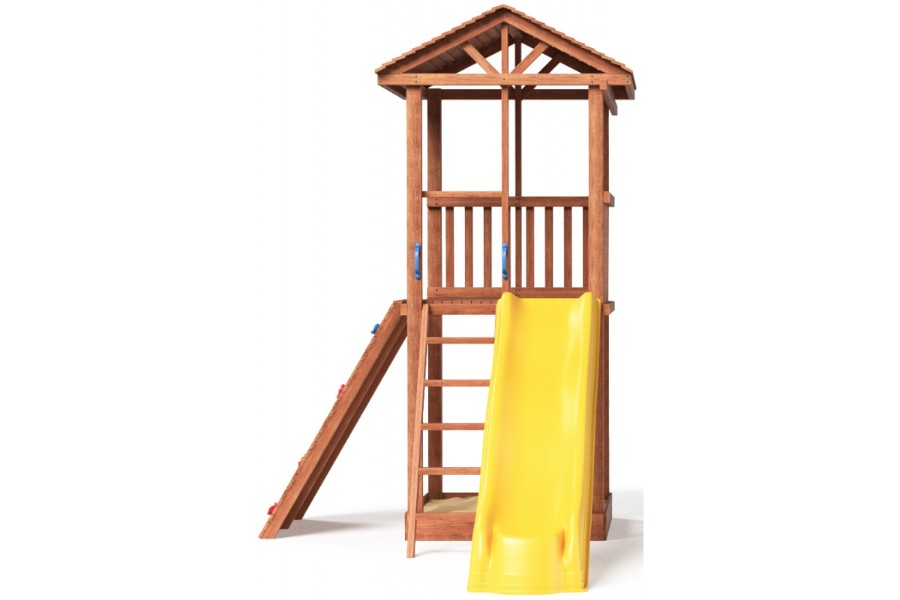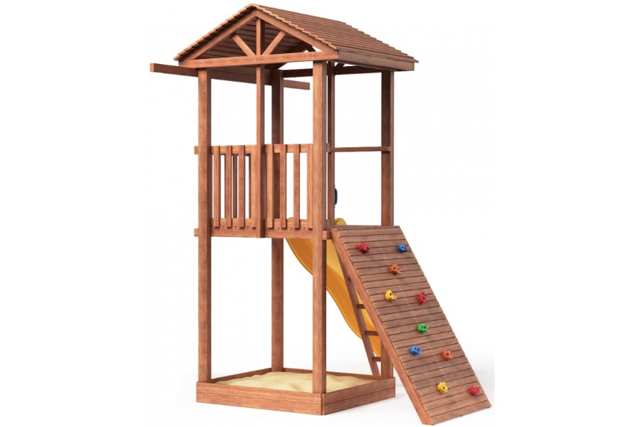 Материал игрового комплекса - лесоматериалы лиственных и хвойных пород, который сушится по специальной технологии, что позволяет не растрескиваться корпусу и несущим конструкциям.