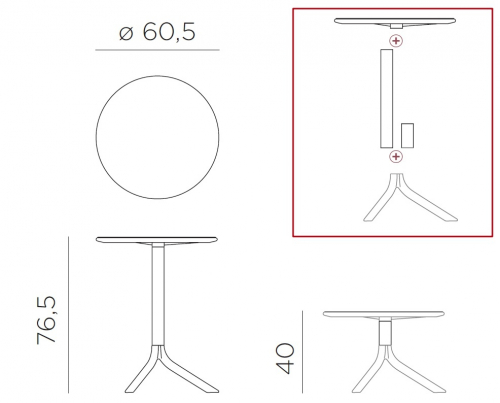 Функциональный и привлекательный стол Spritz с центральной колонной и тремя ножками идеально подходит как для внутренних интерьеров, так для открытых пространств: террасы ресторанов, летние площадки кафе и баров. Его отличительной чертой является возможность регулирования высоты, путем смены опоры. За счет этого обеденный стол может превратиться в кофейный. Большая цветовая палитра отделок состоит из ярких и теплых оттенков, что позволяет подобрать максимально нужный вариант в соответствии с потребностями.