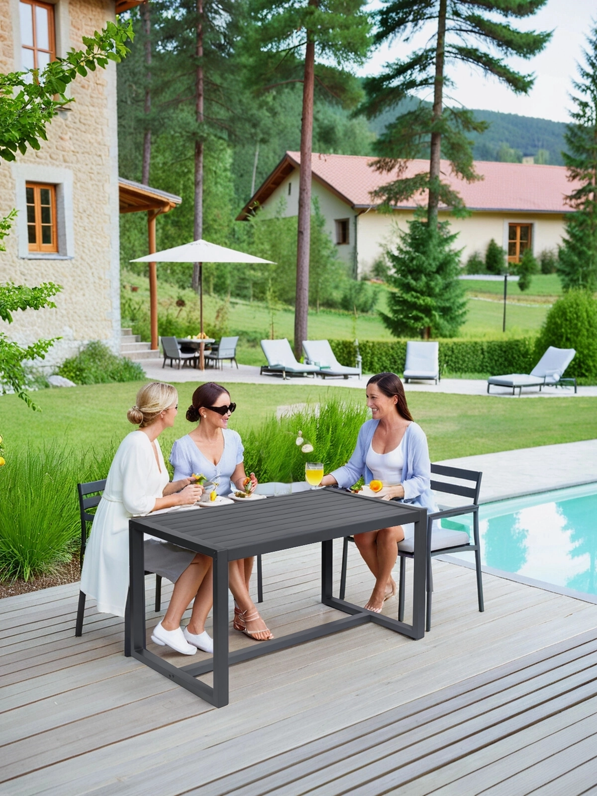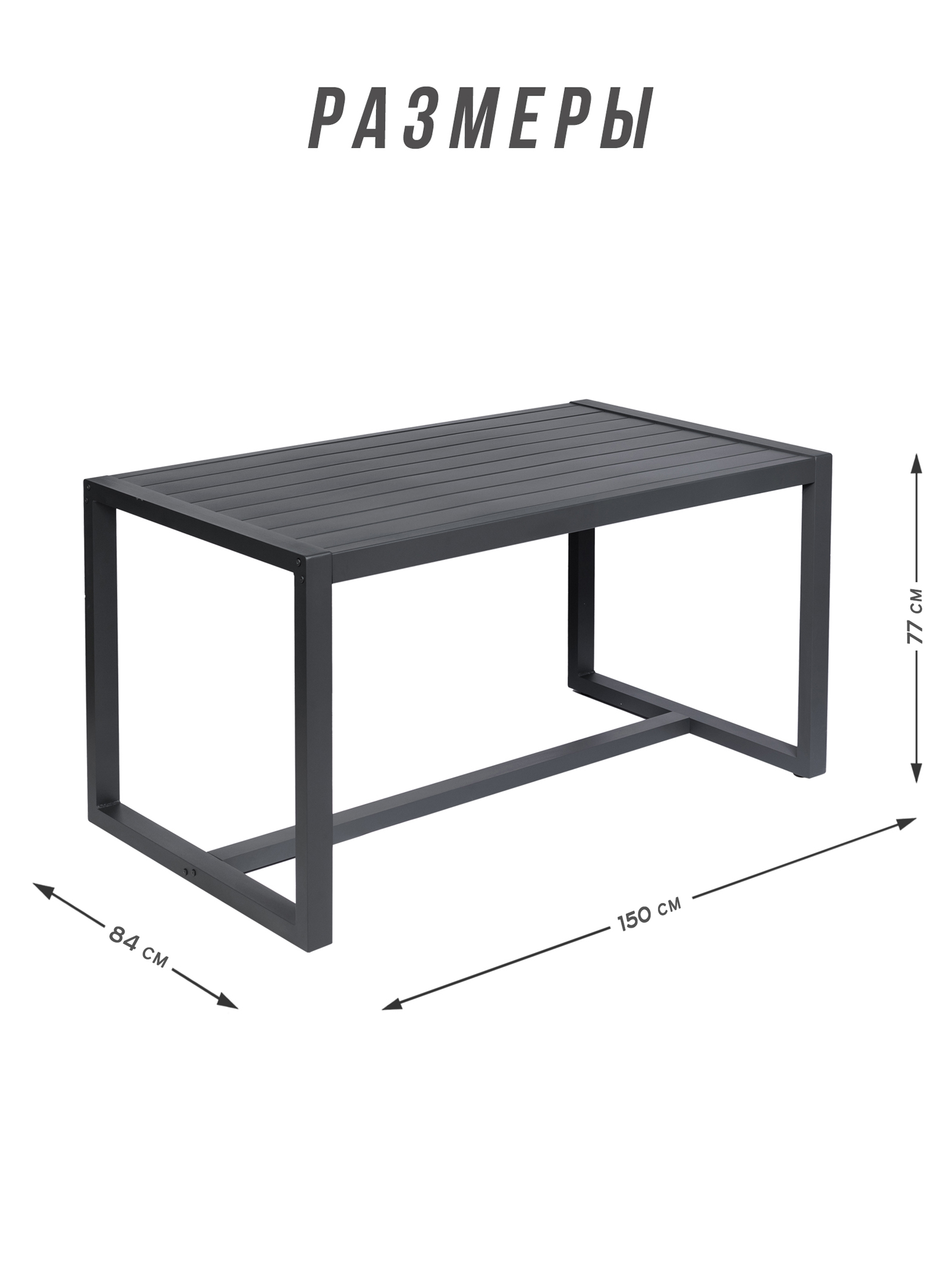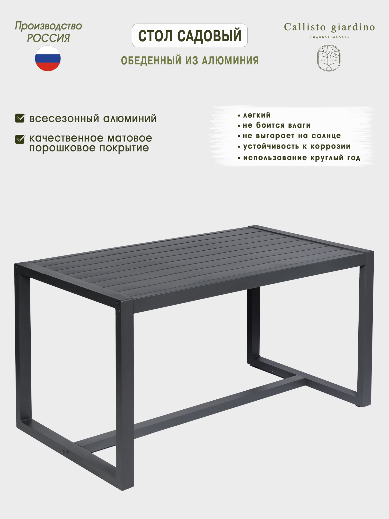 Стол садовый Callisto giardino из алюминия Лагуна G001.1Е Каркас: алюминий, окрашенный в цвет антрацит. Размеры ДхШхВ 1500х840х770мм. Продукция поставляется в разобранном виде. Гарантия: 12 месяцев.