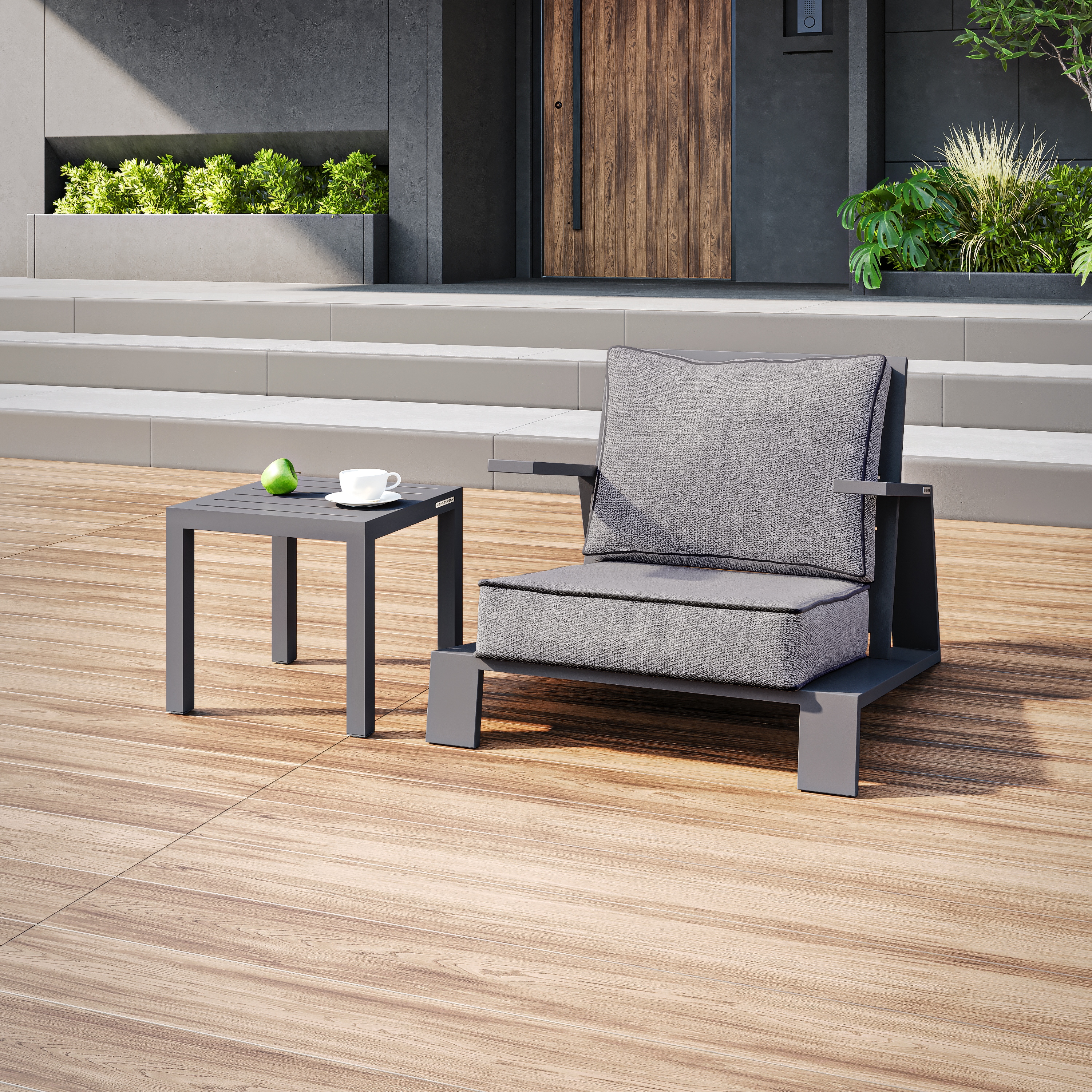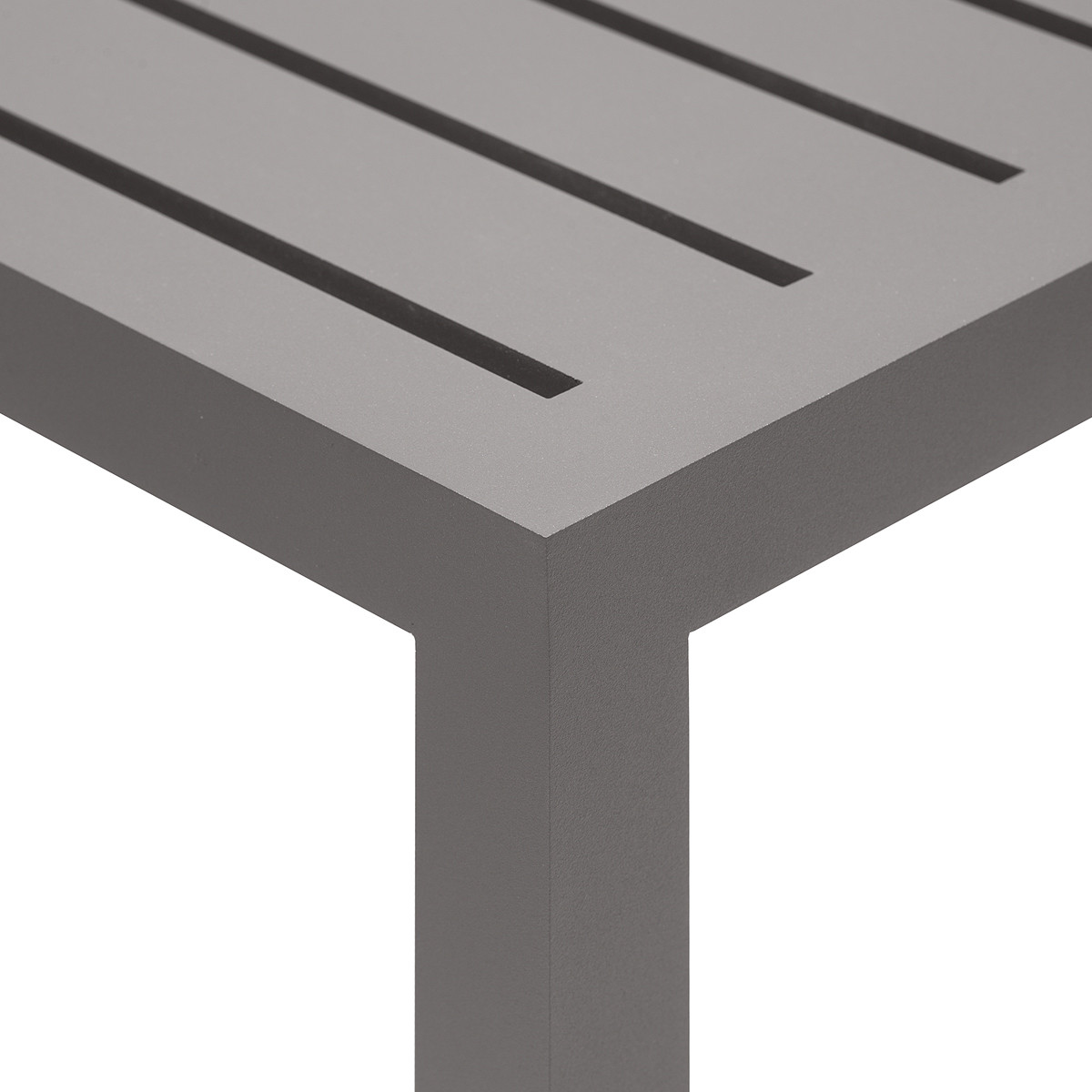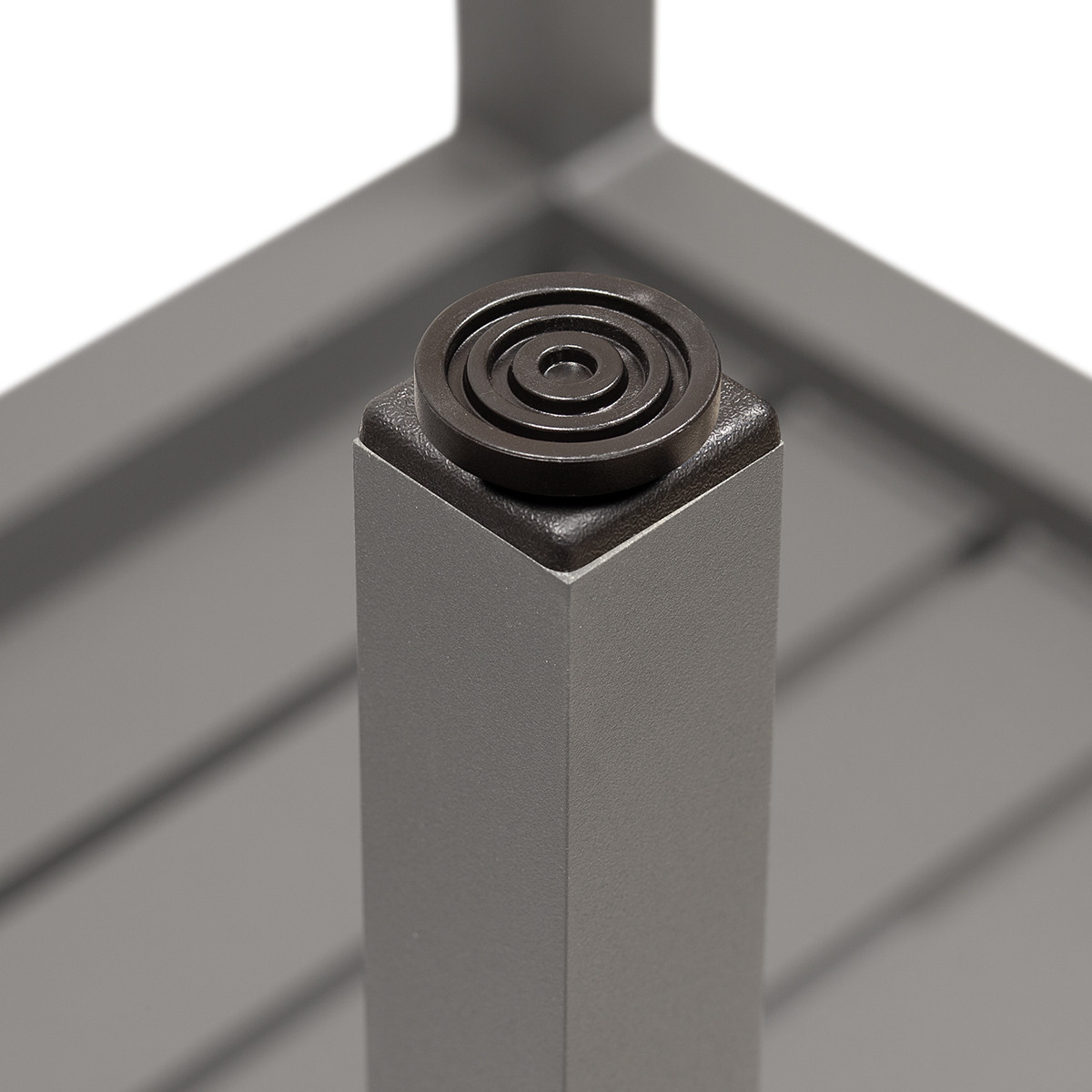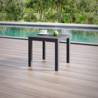 Квадратный садовый стол изготовлен из алюминия, что делает его легким прочным и долговечным, устойчивым к погодным условиям. Каркас стола покрыт качественным и безопасным полимерным покрытием.