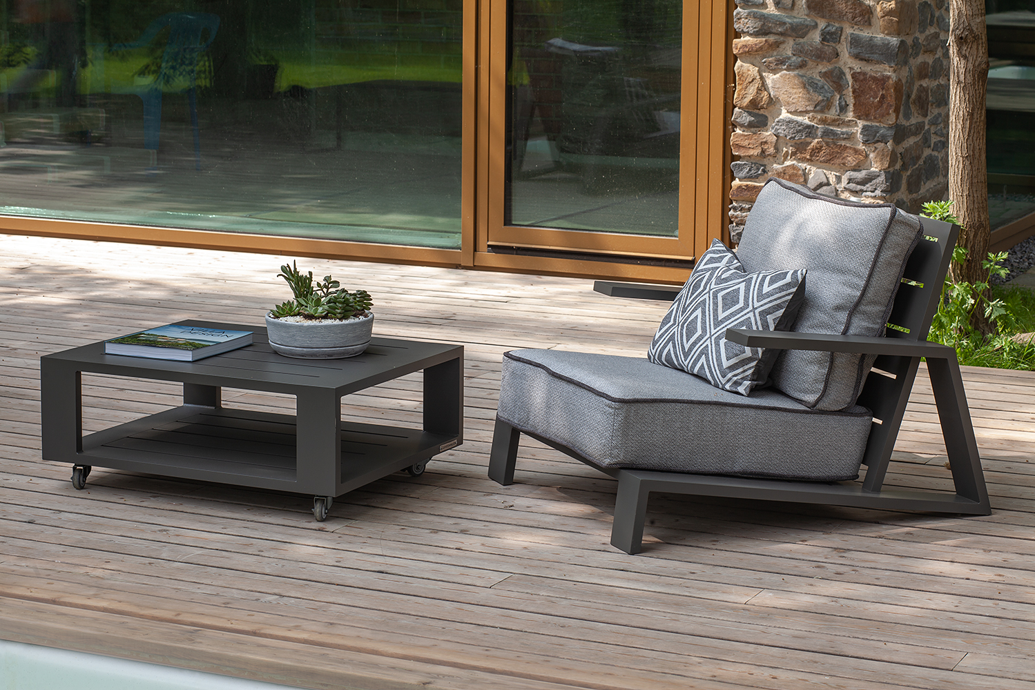 Журнальный стол из коллекции уличной мебели KORFU сочетает в себе современный дизайн и долговечность. Уличный столик выполнен из прочного алюминия с полимерным покрытием, подходит для использования на улице и в помещении. Уличный стол в комплекте с креслом и диваном создает комфортное пространство для отдыха в саду и на террасе.