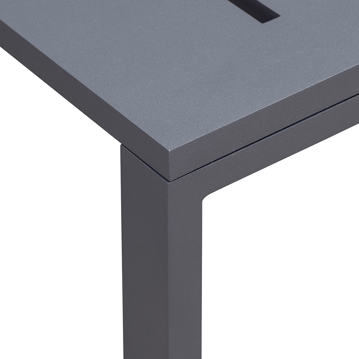 Каркас мебели изготовлен из алюминиевой профильной трубы на высокоточном лазерном оборудовании, что гарантирует премиальное качество, надежность и эстетику сварных швов и изделия в целом. Металлическое основание с матовым полимерным покрытием серого цвета характеризуется повышенной прочностью, устойчивостью к царапинам. Профессиональная порошковая покраска надолго сохранит внешний вид мебели.