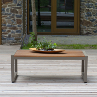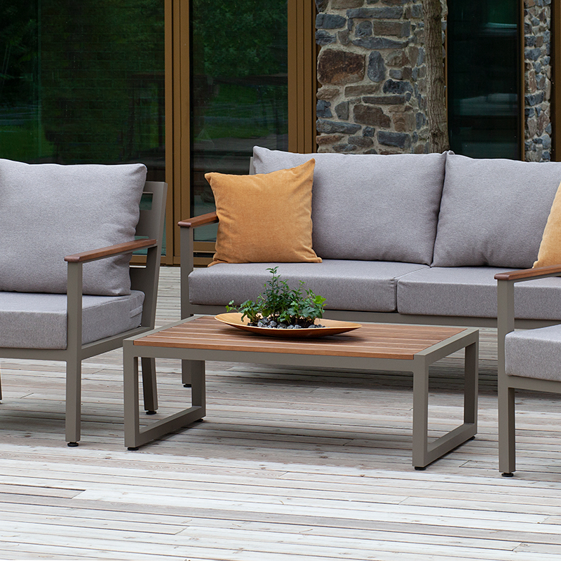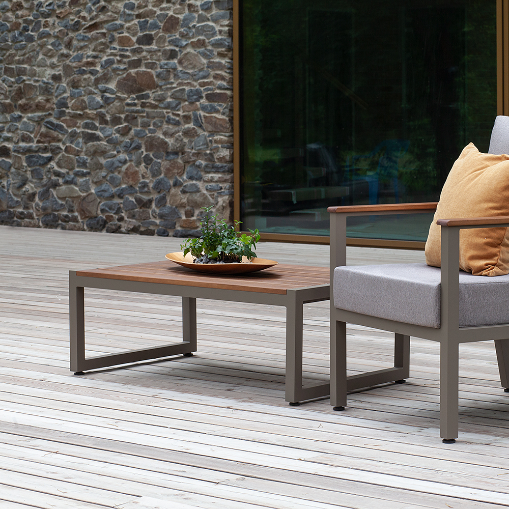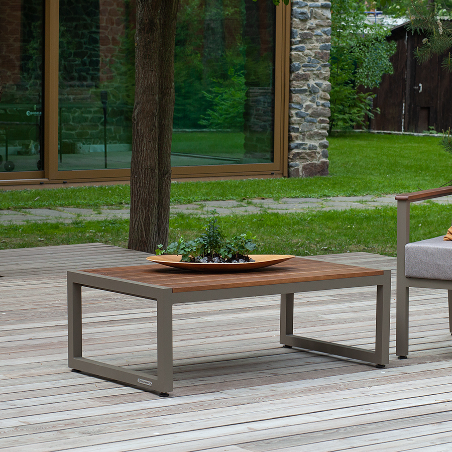 Журнальный стол из коллекции уличной мебели SANTORINI сочетает в себе элегантный дизайн и долговечность. Легкий алюминиевый каркас дополняет столешница из лиственницы. Садовый столик подходит для использования на улице и в помещении. Уличный стол в комплекте с креслами и диваном создает комфортное пространство для отдыха в саду и на террасе.