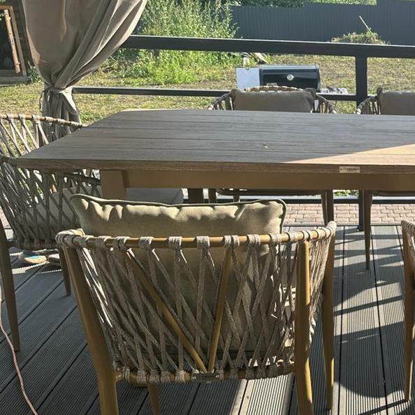 Каркас алюминий, покрытие rope (веревка), подушка ткань 100% polyester в комплекте.