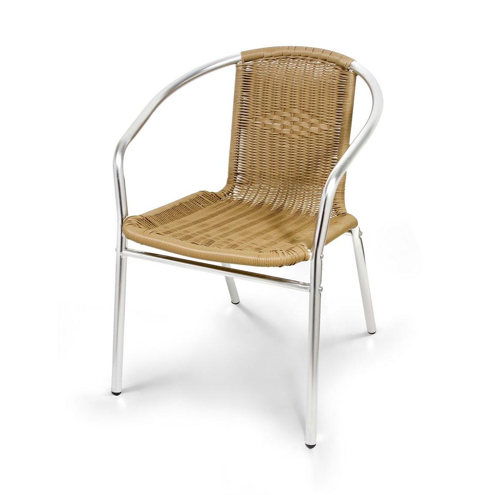 Стул: H74xW58xL54см. Материал: искусственный ротанг. Каркас: труба алюминий D25.Цвет: Cappuccino. Объем: стул - 0,3 куб. м, вес: 2,1 кг.