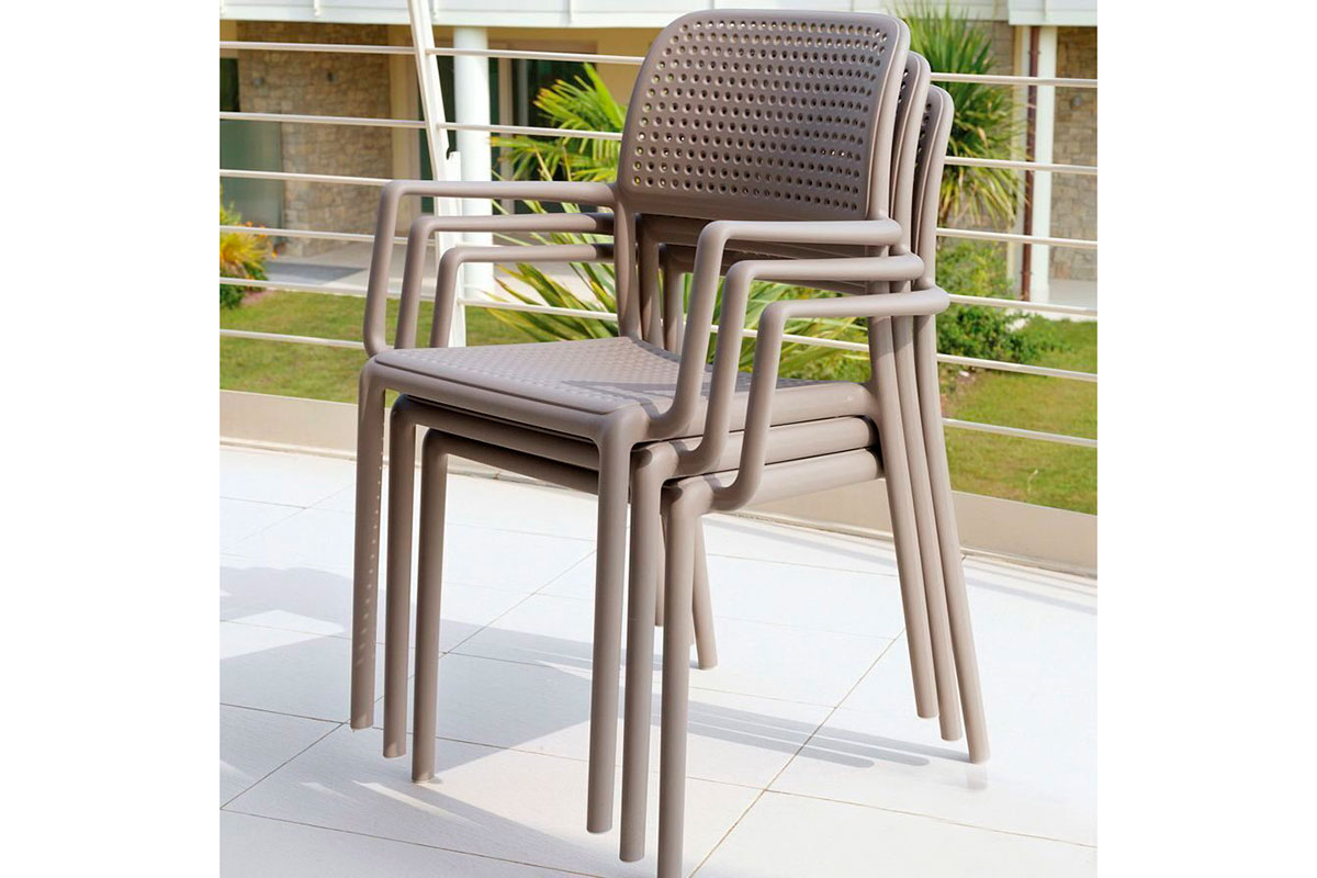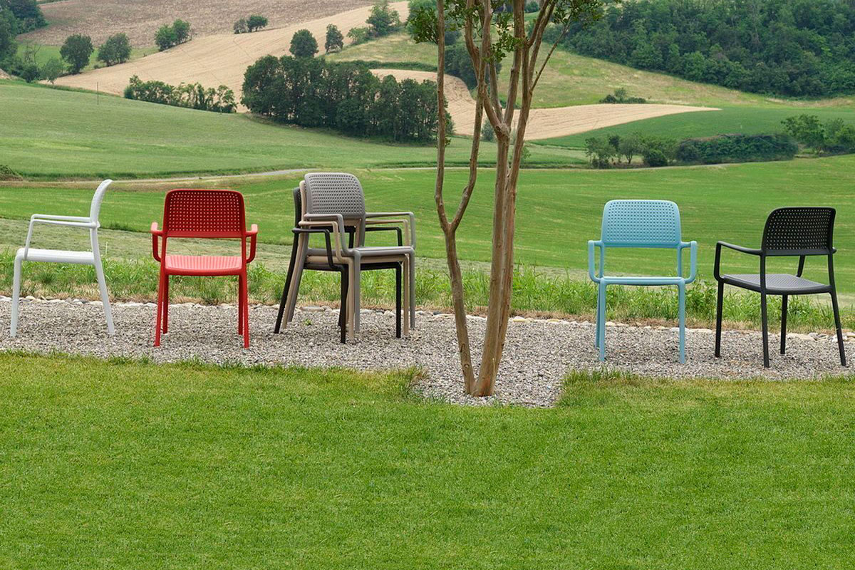 Уличные стулья Bora коллекции Lekko с подлокотниками от производителя Nardi - это стильный и элегантный стул от итальянских дизайнеров из стеклопластика, разработанный для коммерческого использования в помещении и на улице.