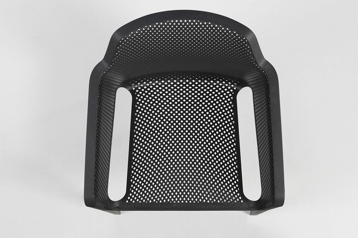 Цельнолитое кресло Net имеет эргономичную форму и прекрасно подойдет для организации обеденных зон на верандах летних кафе или патио.