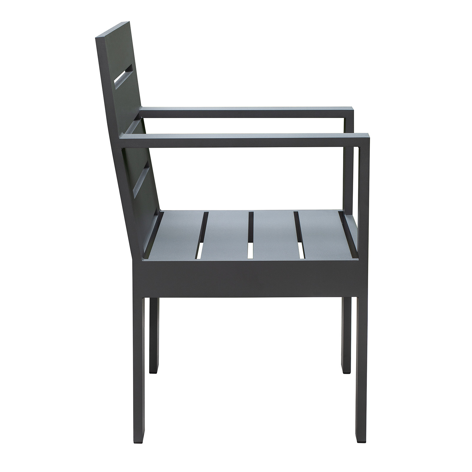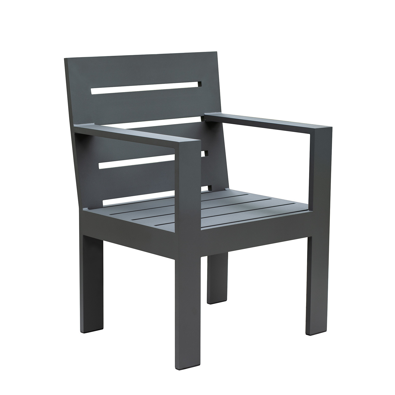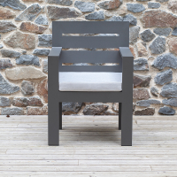 Уличный стул с подлокотниками KORFU отличается современным дизайном и долговечностью. Каркас изготовлен из высокопрочного алюминия с полимерным покрытием в оттенке LAVA. Для комфортной посадки в комплекте идет подушка в съемном чехле из мебельной рогожки светло-серого оттенка.