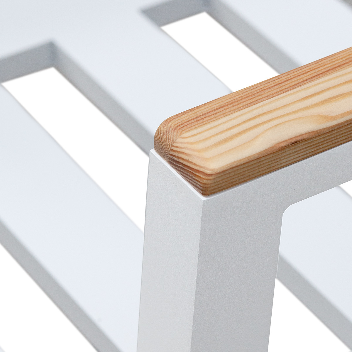 Удобные подлокотники выполнены из массива лиственницы толщиной 20 мм, дерево покрывают маслом, которое защищает от воздействия внешней среды. Теплая натуральная текстура дерева подарит комфорт и приятные тактильные ощущения.