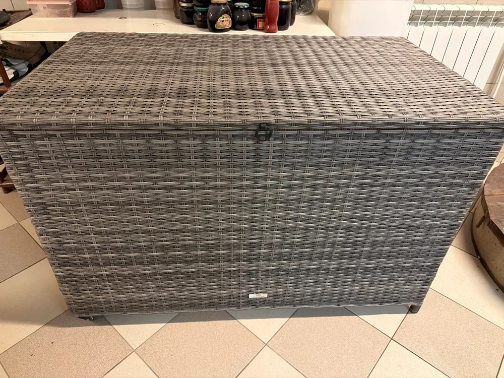 Сундук для хранения Royal Family KARL 120 серый с колёсиками – идеальное решение для тех, кто ценит практичность и элегантность. Этот вместительный сундук изготовлен из искусственного ротанга ручного плетения, что придаёт ему особую изысканность и долговечность. Каркас из стали обеспечивает прочность и устойчивость конструкции.