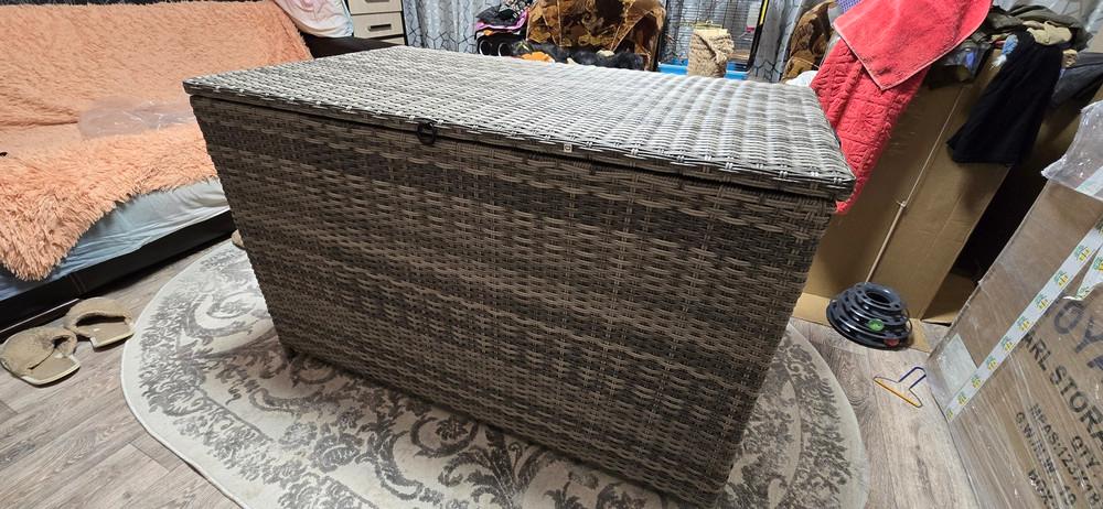 Благодаря встроенному механизму газлифта, крышка сундука открывается легко и плавно, что обеспечивает удобный доступ к его содержимому. Для удобства перемещения сундук оснащён колёсиками и ручкой. Подложка внутри обеспечивает дополнительную защиту хранимых вещей.