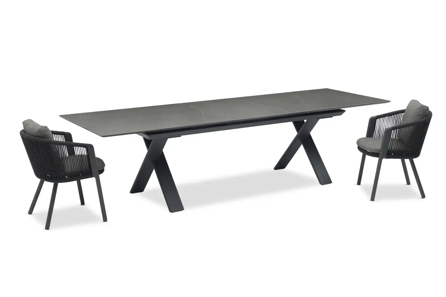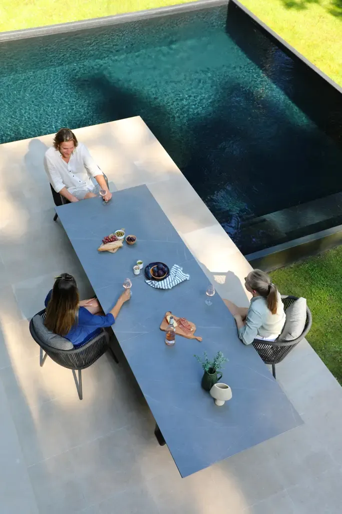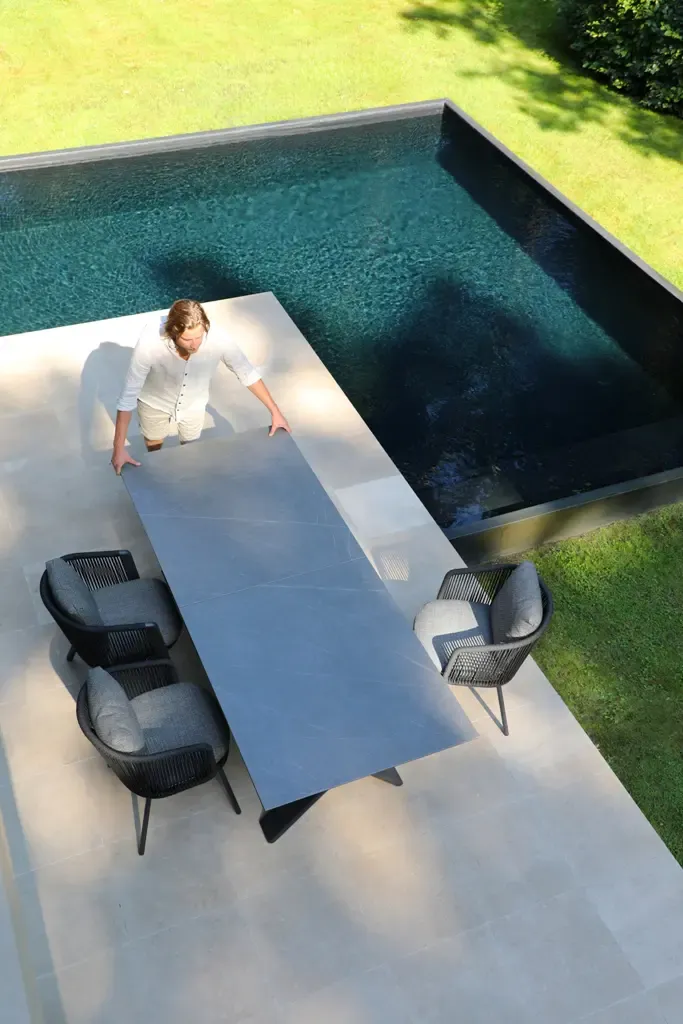 Тимро - это роскошные столы со столешницей из спеченного камня. Спеченный камень — это новейший продукт современных инноваций, он изготовлен из порошка натурального камня. Таким образом, столешница очень прочная. Материал устойчив к атмосферным воздействиям, устойчив к царапинам и к экстремальным температурам.