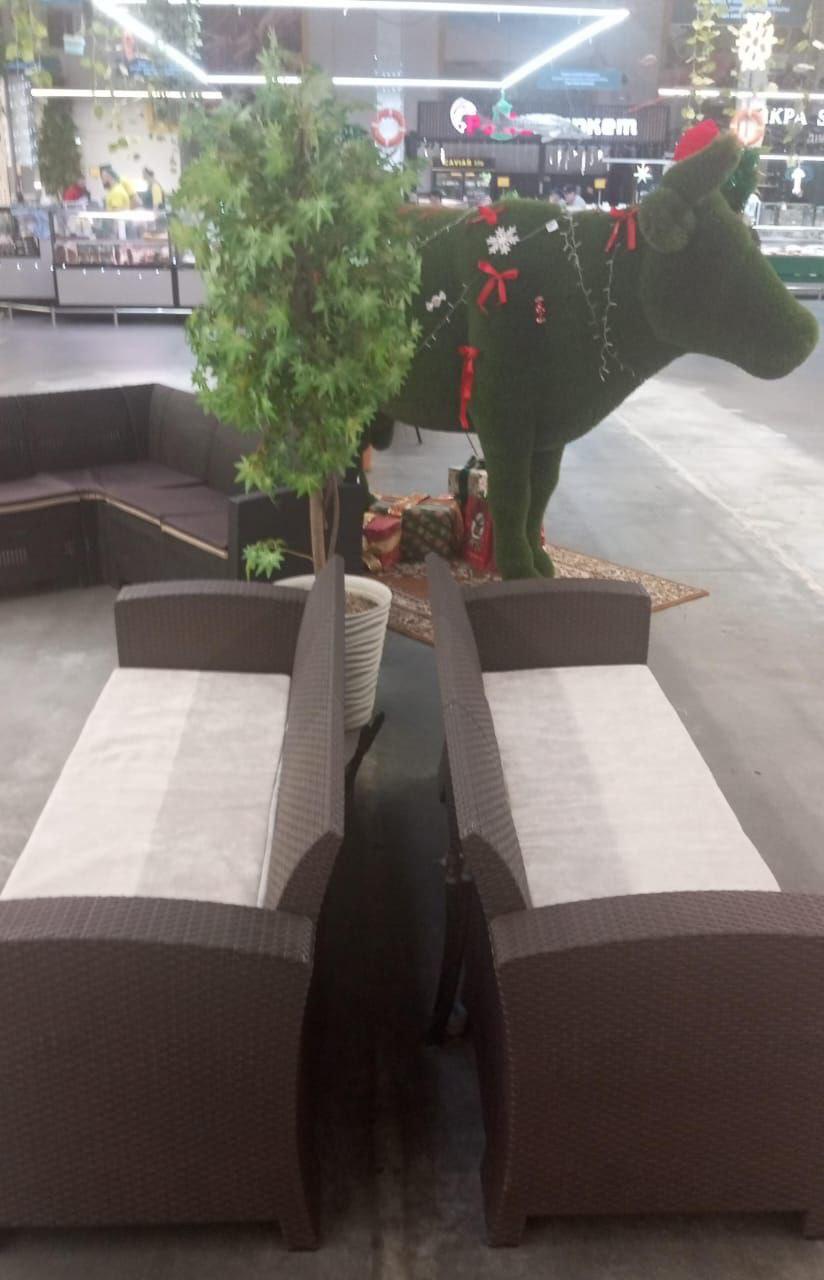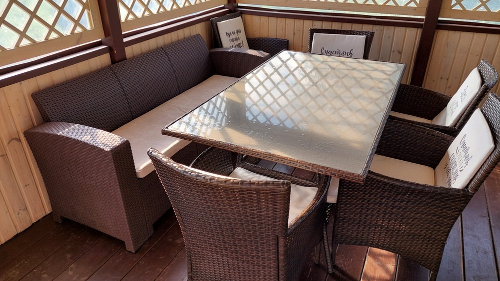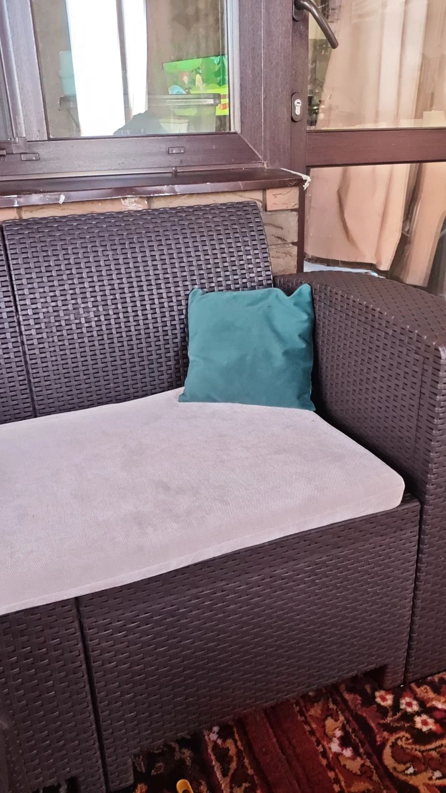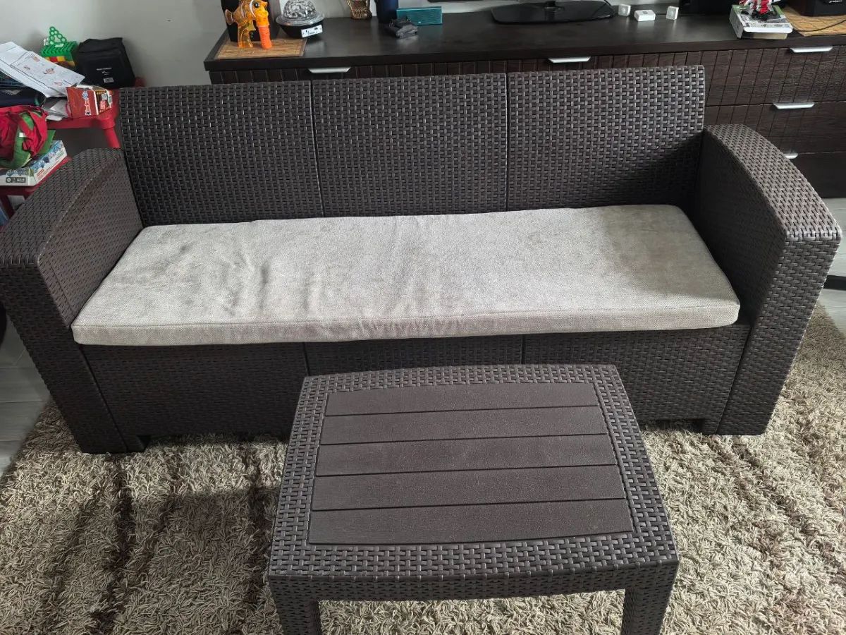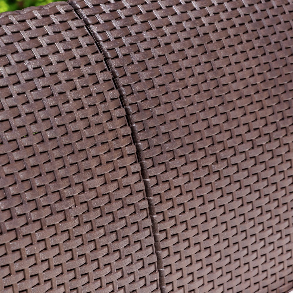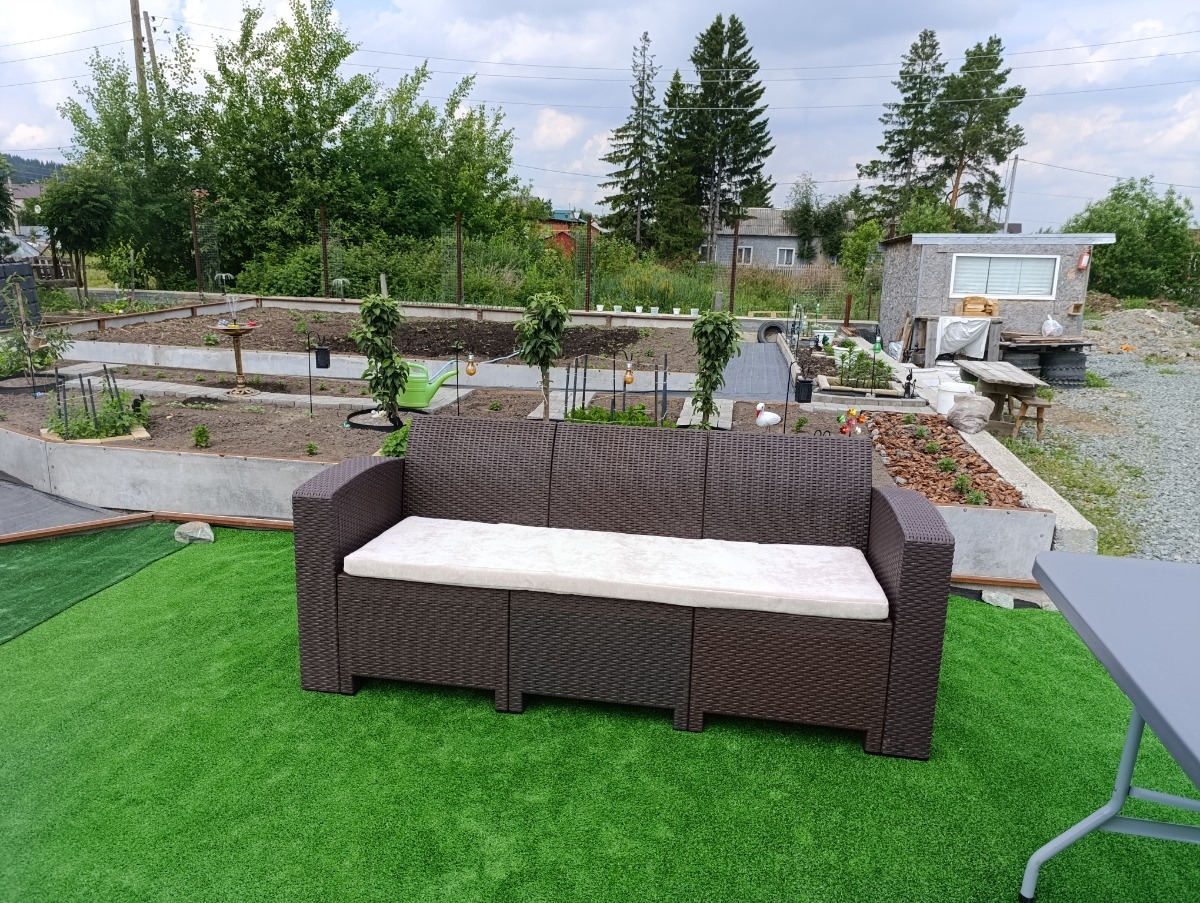 Широкое сиденье, мягкие подушки и удобная спинка обеспечивают комфортную посадку для трёх человек. Материал — прочный пластик с плетёной текстурой, устойчивый к солнцу, влаге и перепадам температур. Диван не выцветает, не требует сложного ухода и надолго сохраняет аккуратный внешний вид.