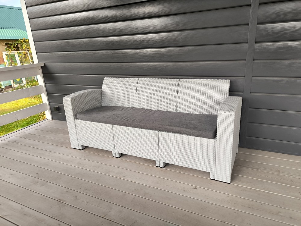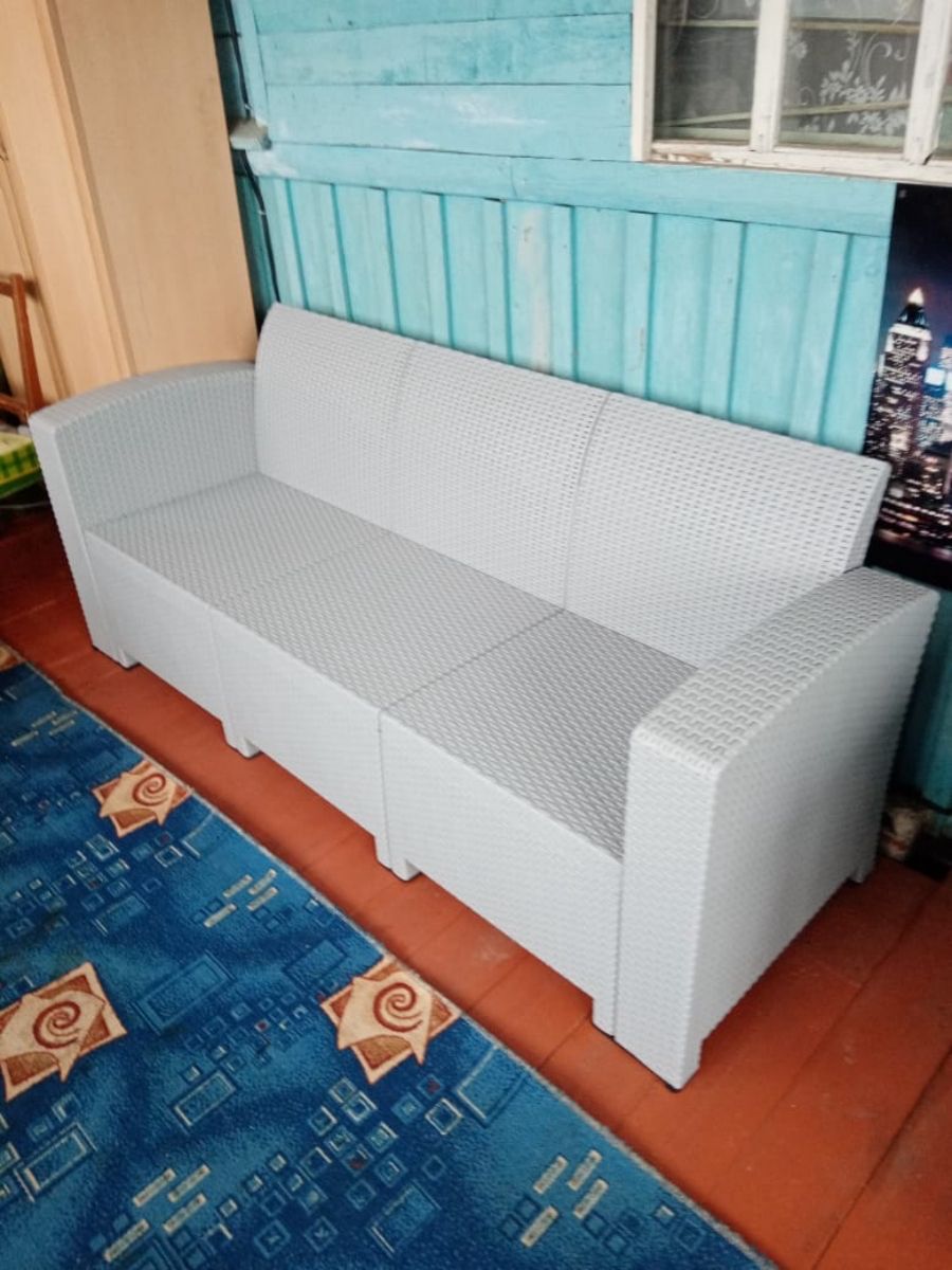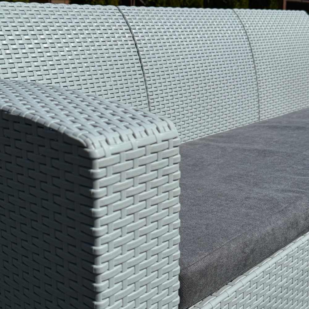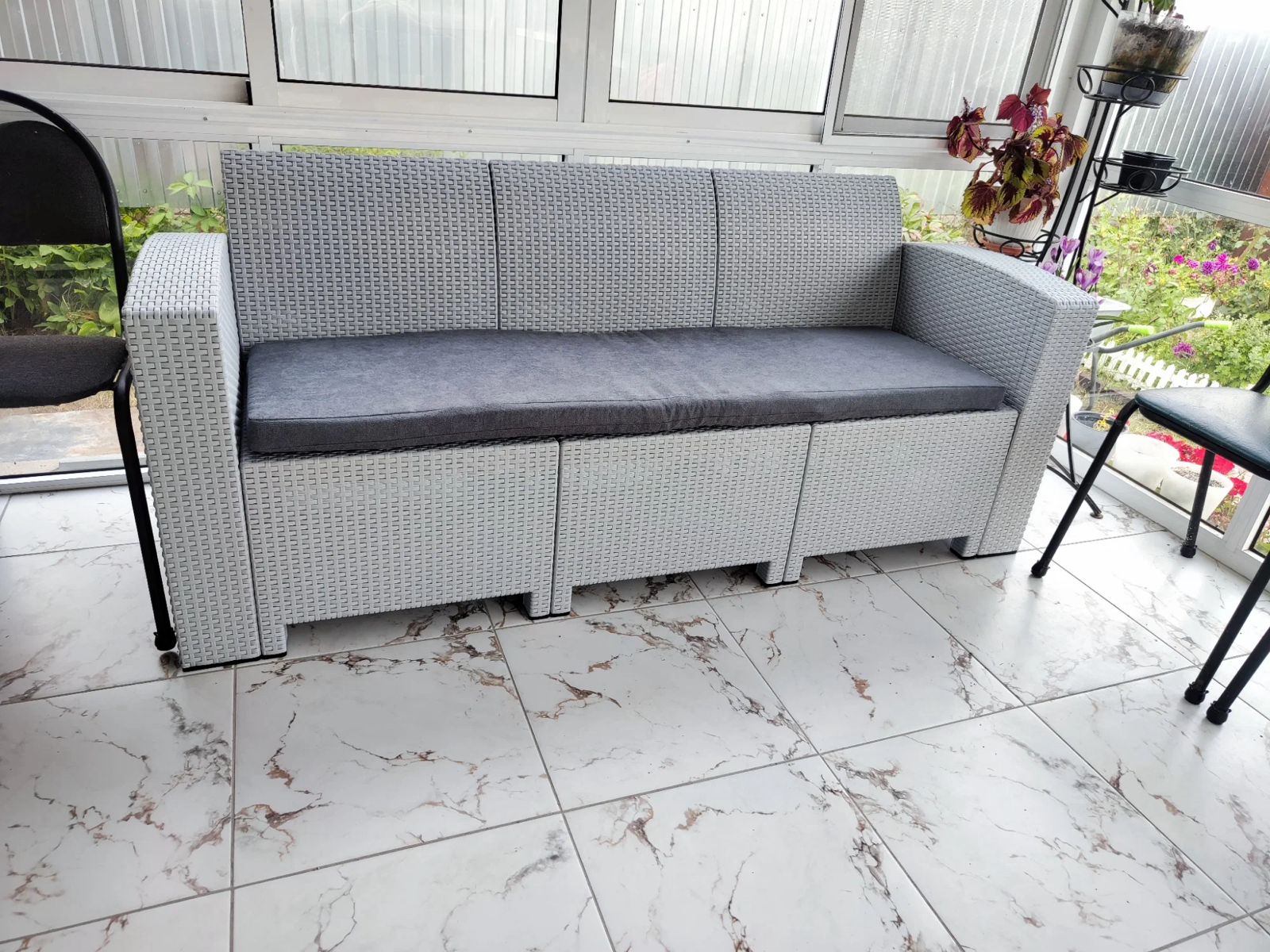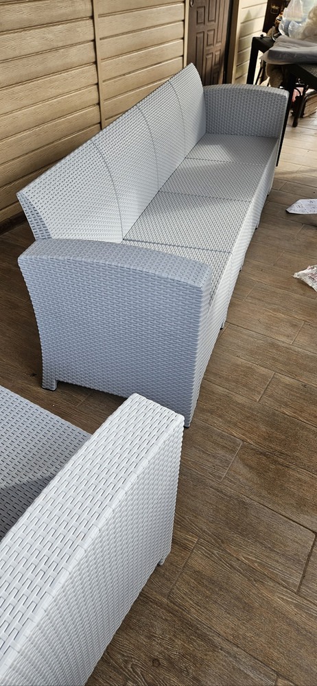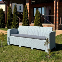 Мягкие подушки, широкое сиденье и удобная спинка обеспечивают настоящий комфорт, а прочный пластик с матовой текстурой легко справляется с капризами погоды. Солнце, влага и перепады температур ему не страшны — диван надолго сохраняет свой аккуратный внешний вид и не требует сложного ухода.