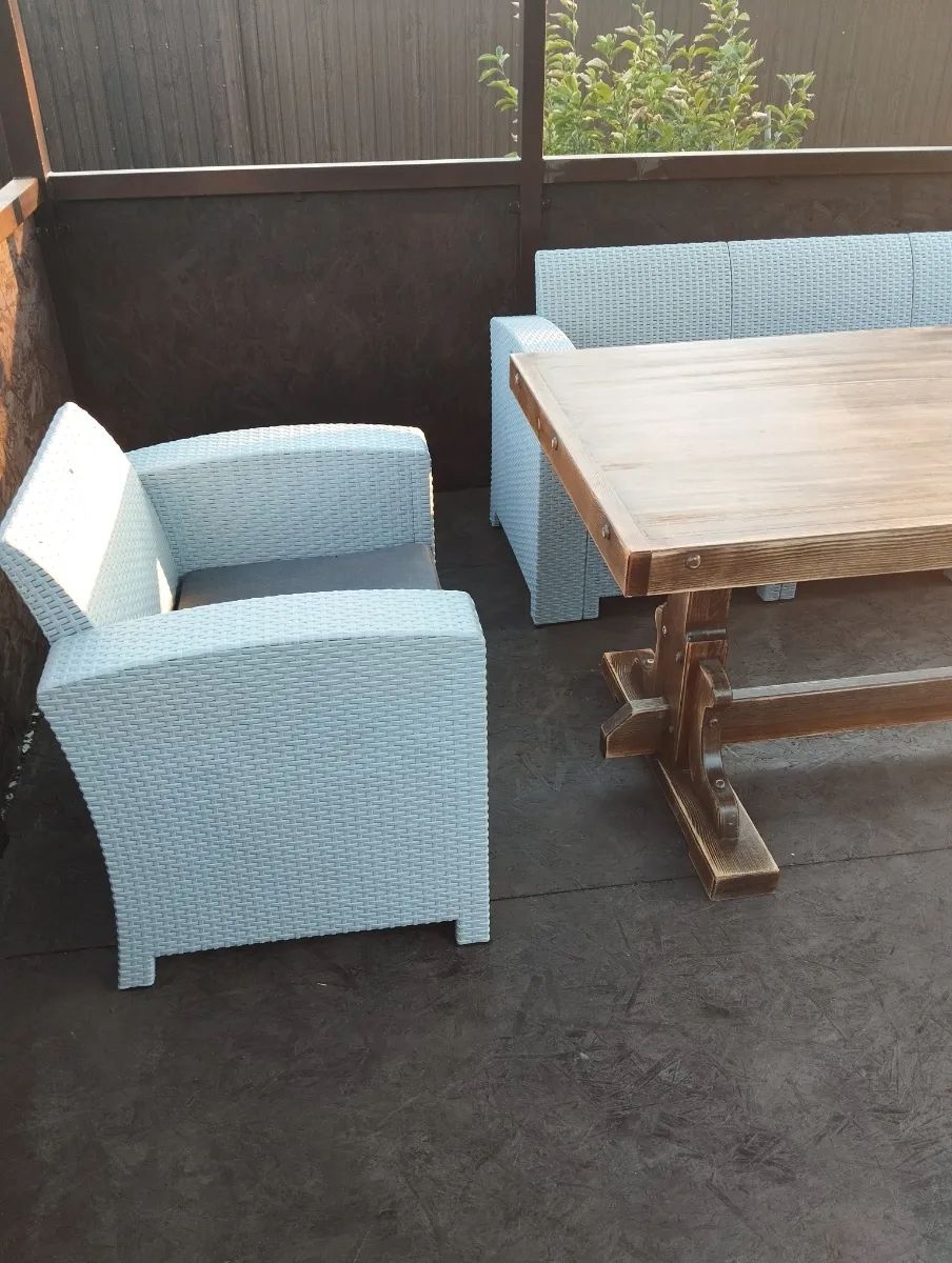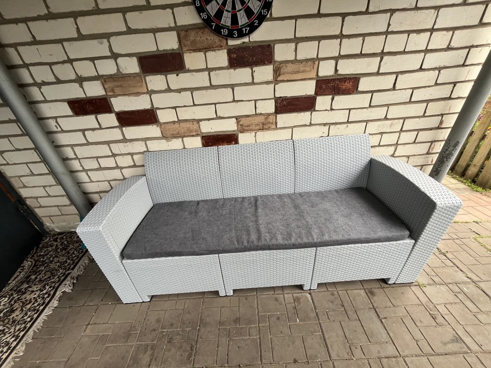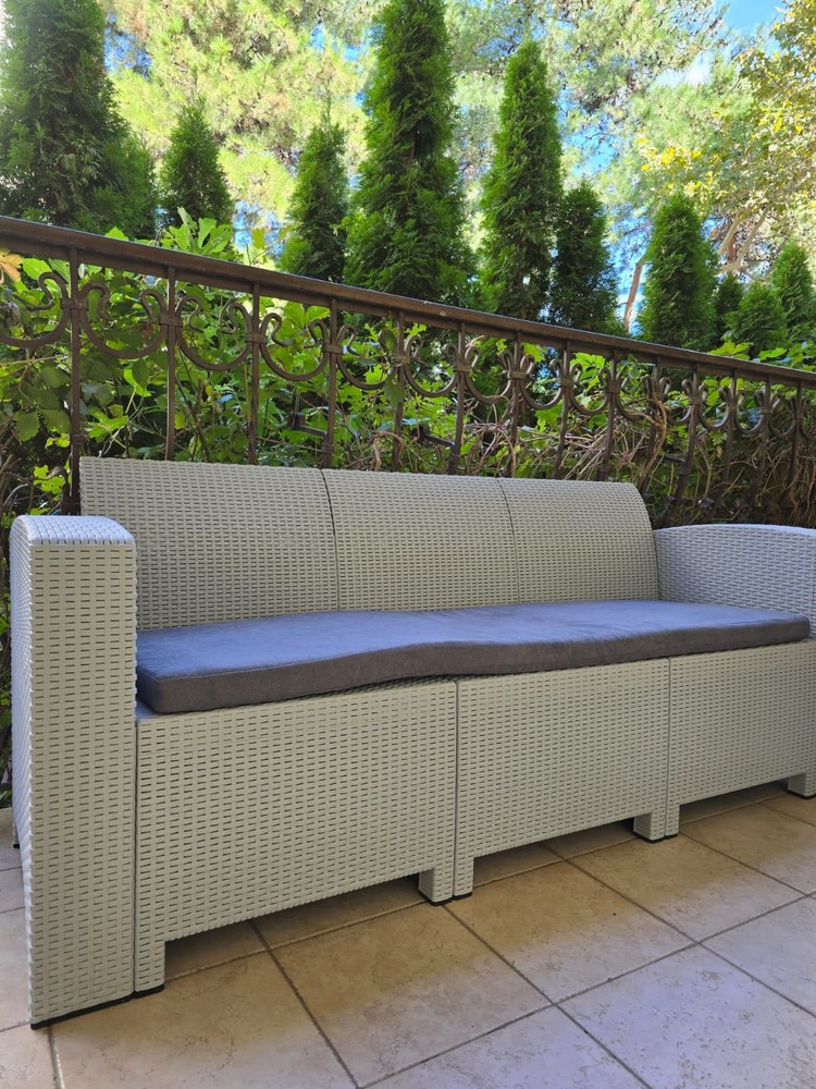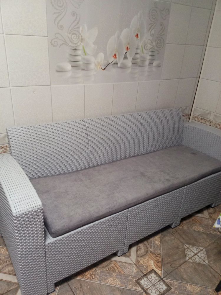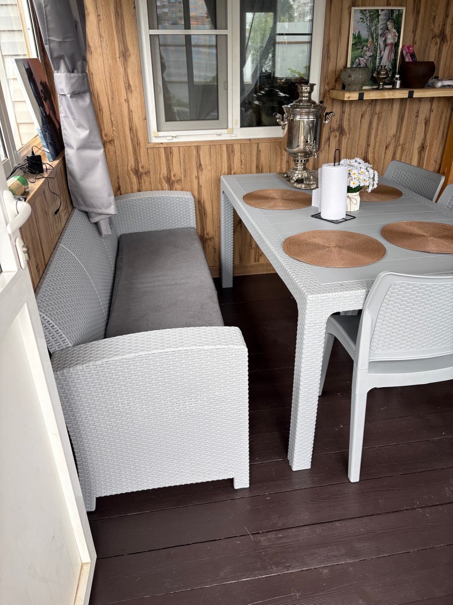 Мягкие подушки, широкое сиденье и удобная спинка обеспечивают настоящий комфорт, а прочный пластик с матовой текстурой легко справляется с капризами погоды. Солнце, влага и перепады температур ему не страшны — диван надолго сохраняет свой аккуратный внешний вид и не требует сложного ухода.