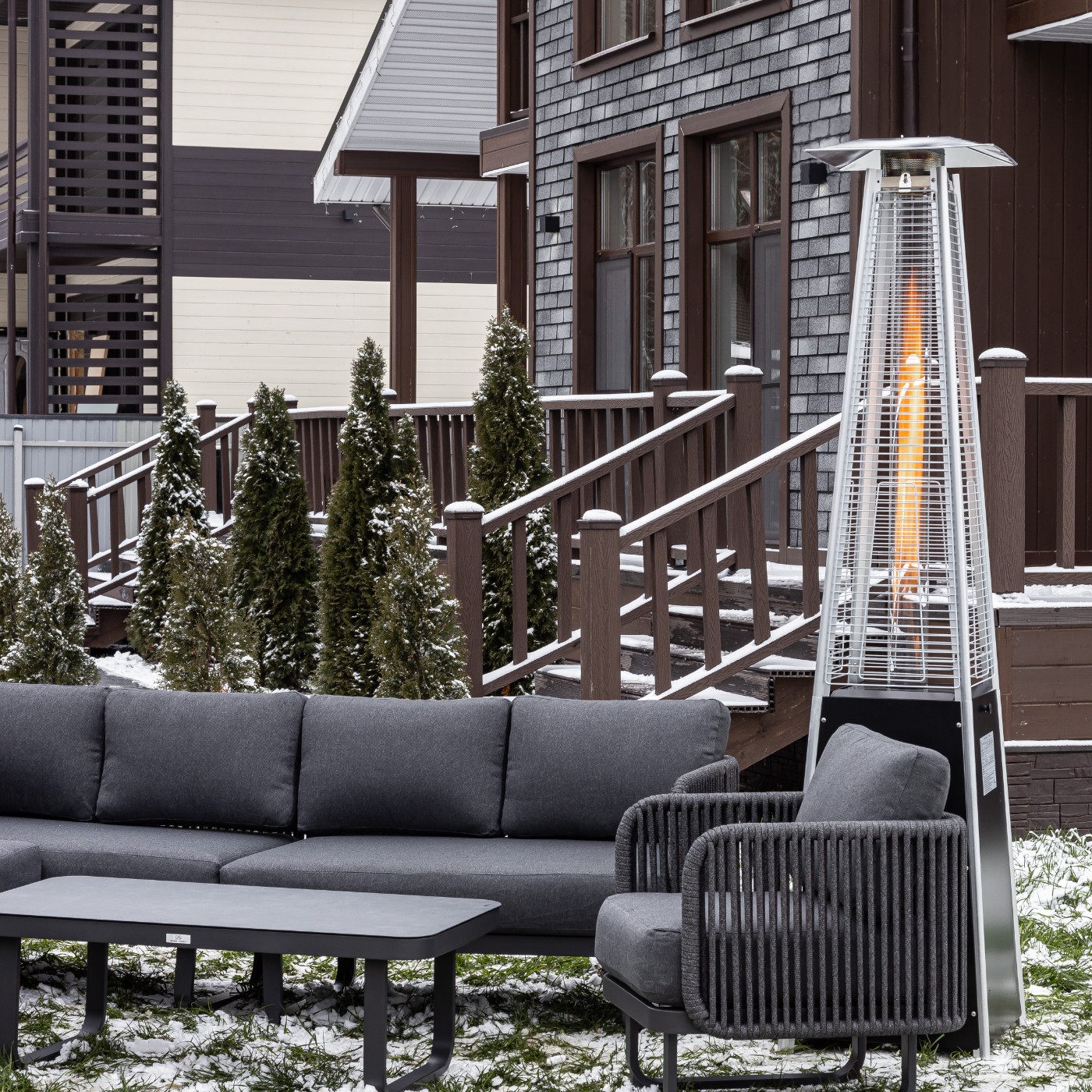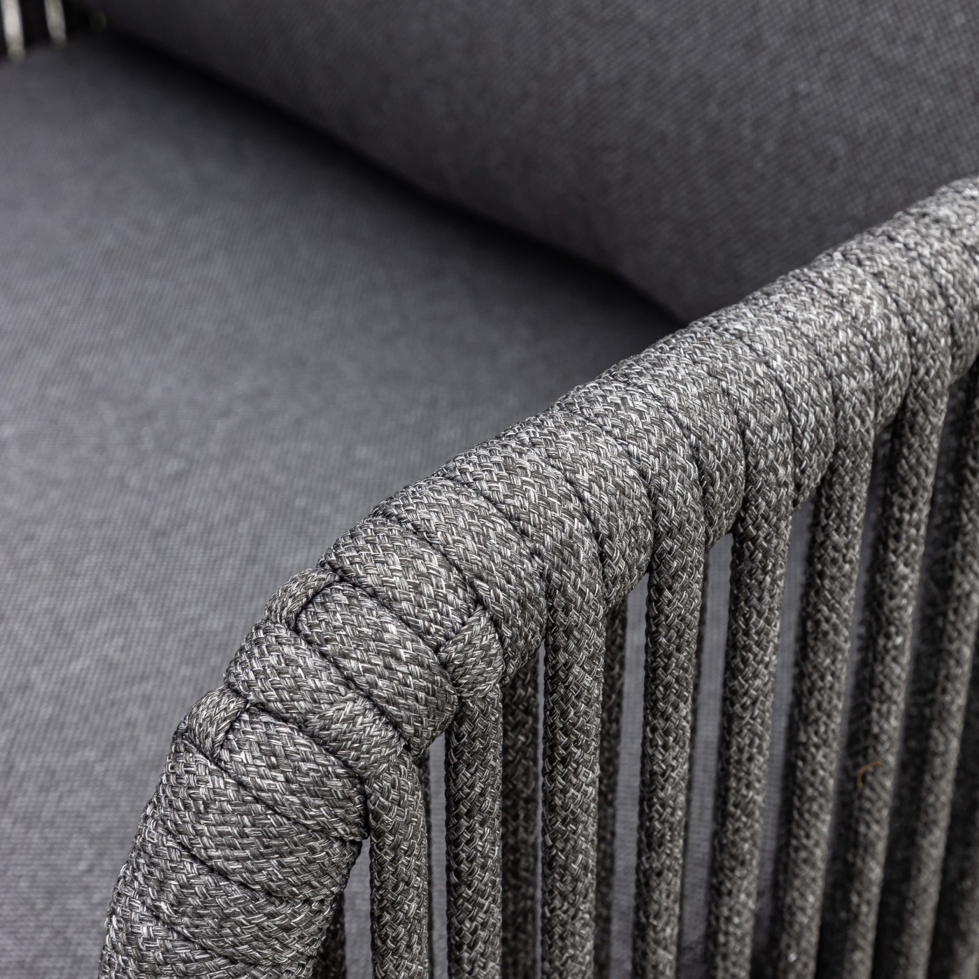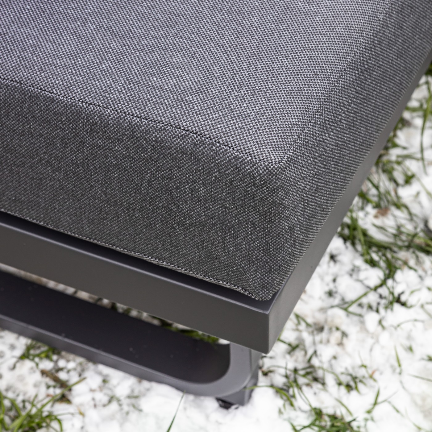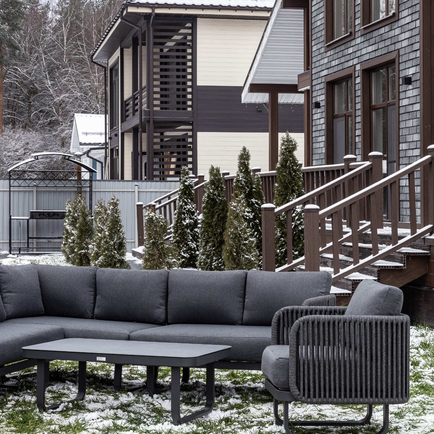 Угловая лаунж-зона из алюминия ADRIAN - это современный и стильный обеденный комплект, который будет отлично смотреться в любом интерьере. Он включает в себя два удобных кресла, трехместный диван и прочный обеденный стол.
