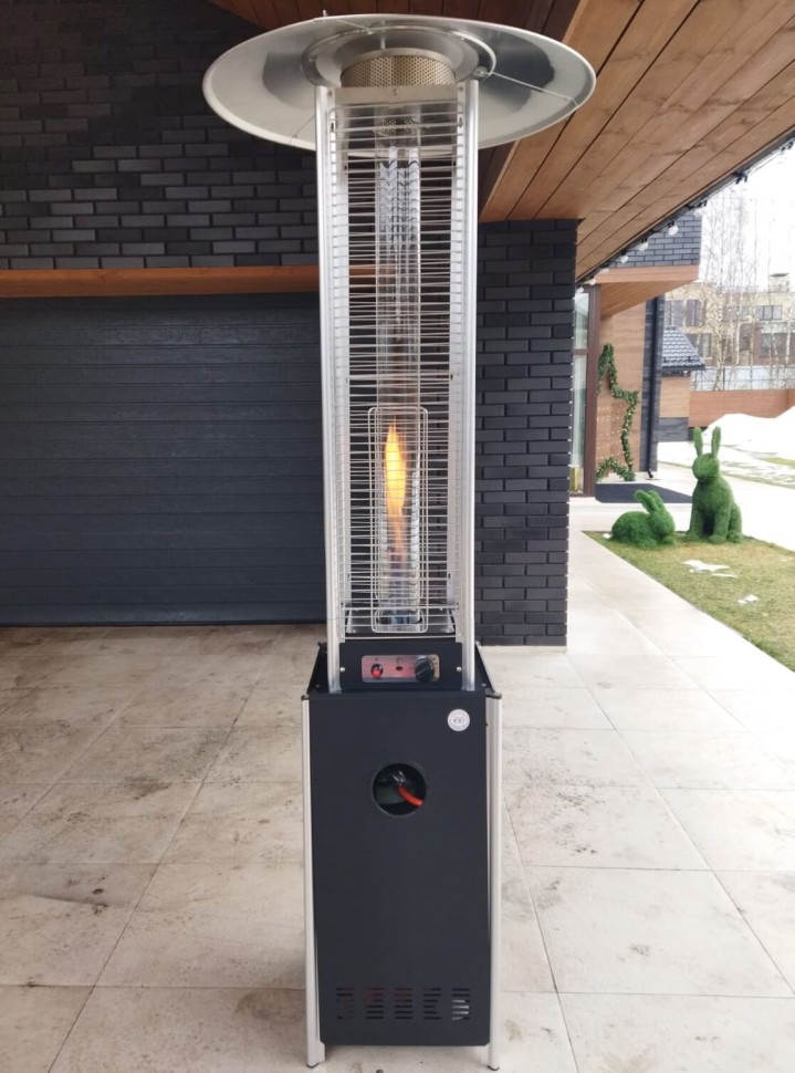 Уличный газовый обогреватель WWT 13S Black НОВИНКА 2023 года выполнен в форме с квадратным основанием в черном цвете , имеет прямые линии, что подчеркивает его изысканную форму.