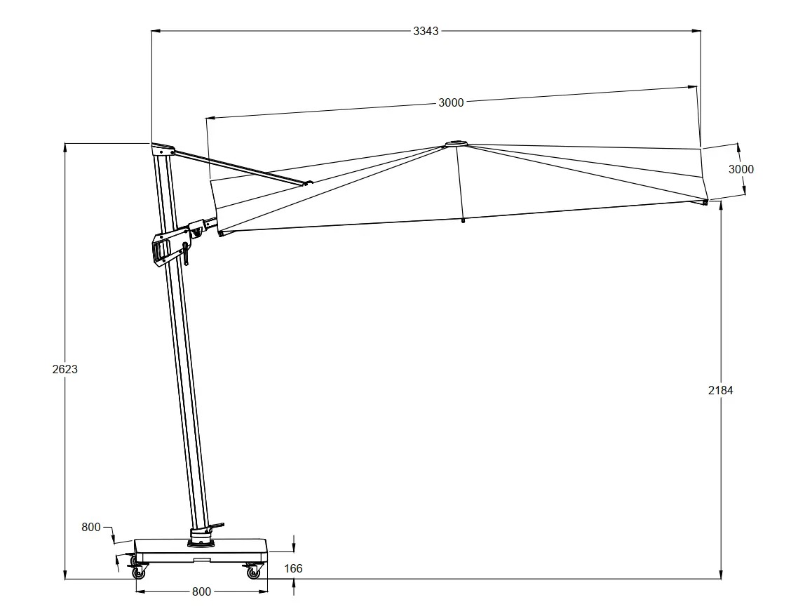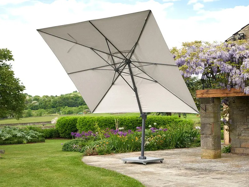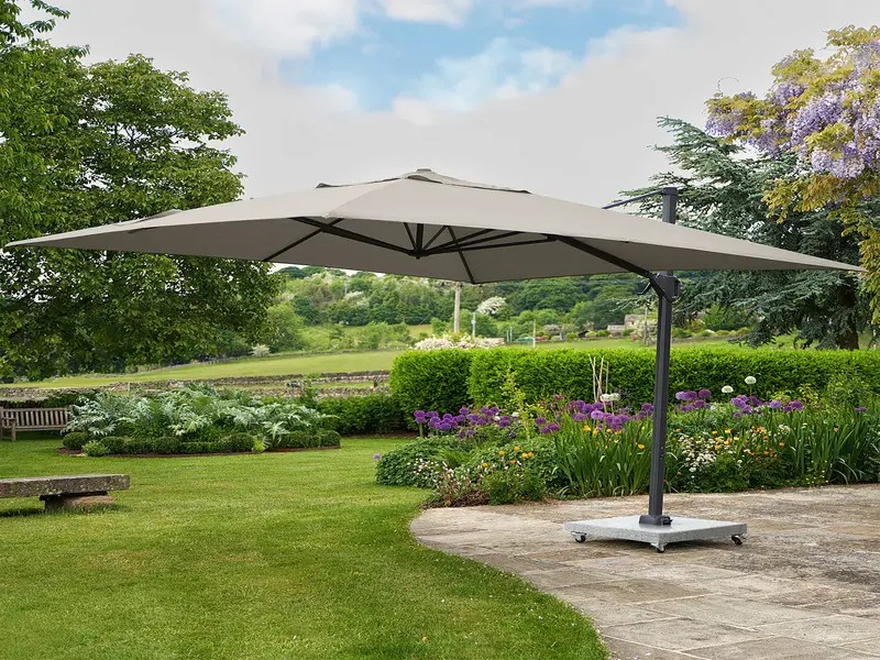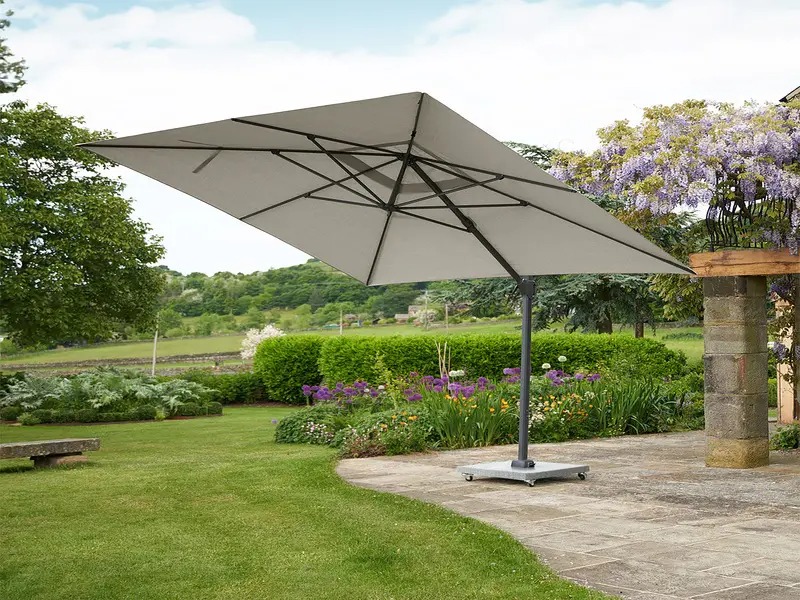 Подвесной квадратный зонт на боковой опоре.