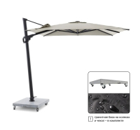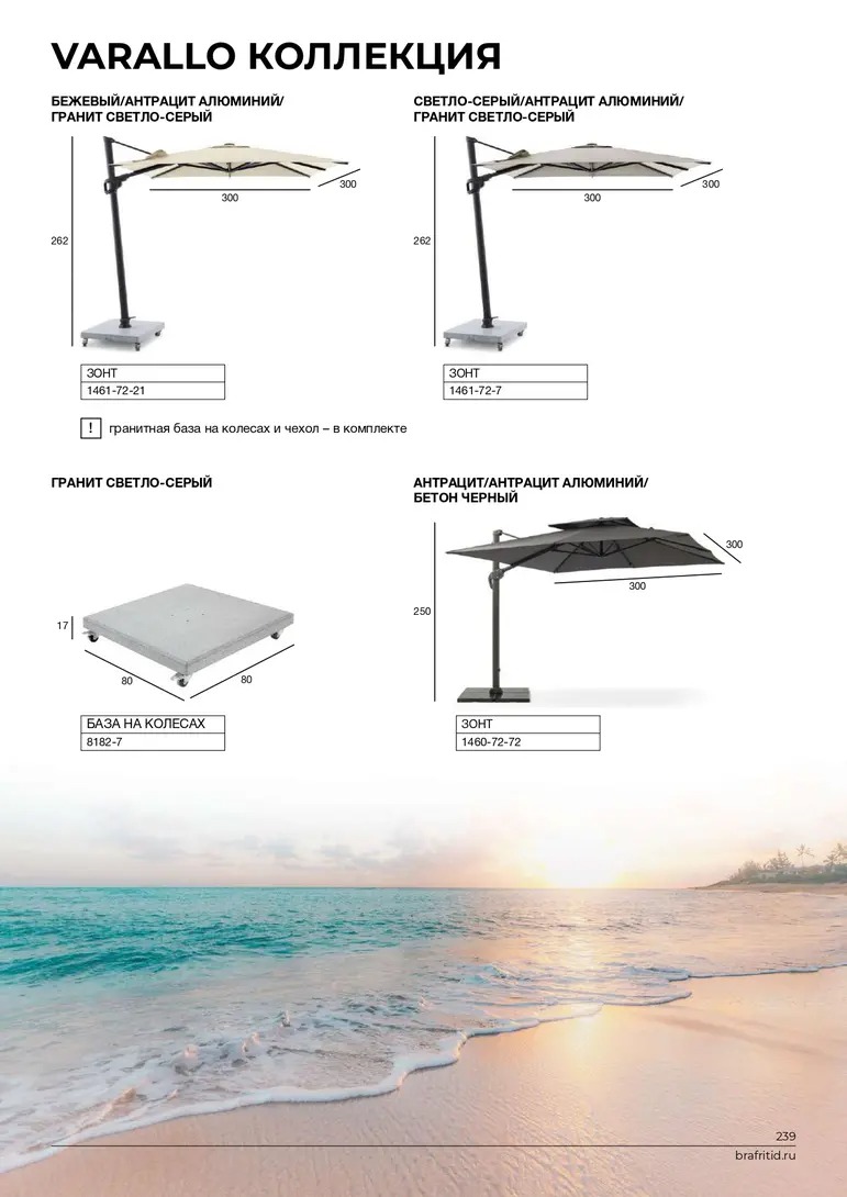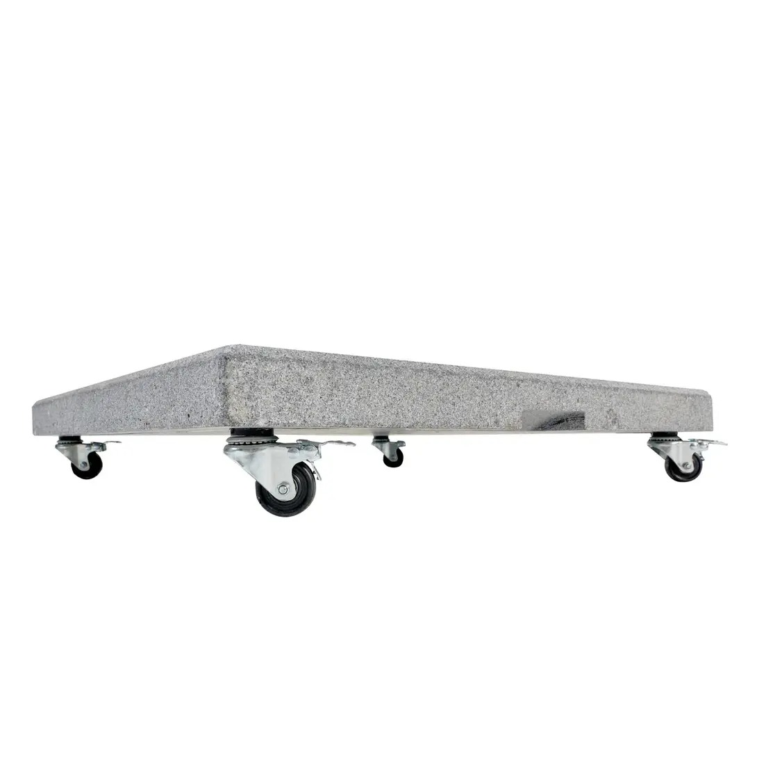 Основание зонта: гранит, вес - 130 кг, квадратная форма, размер: 80x80x6 см светло-серая полировальная поверхность, с колесами.