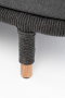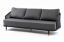 Диван имеет алюминиевый каркас, окрашенный порошковой краской в темно-серый (RAL7024) цвет. Боковины каркаса и спинка вручную оплетены роупом - эластичными синтетическими лентами, изготовленными из высокопрочных полиэфирных волокон. Цвет оплетки в тон каркасу - темно-серый. На ножках дивана идут дубовые наконечники (заглушки).