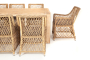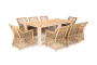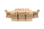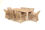 Обеденная группа на 8 персон. Стол из тикового дерева. Все стулья с подлокотниками и подушками, алюминиевый каркас, искусственный ротанг натурального соломенного цвета. "Витория" деревянный стол из натурального тика, 200х100см 1шт. 2 000Х1 000Х770, "Латте" плетеное кресло из искусственного ротанга, цвет соломенный 8шт. 550Х660Х850,
