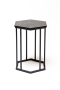 Шестиугольный столик имеет подстолье, изготовленное из стали, а его столешница выполнена из качественного монолитного компакт-пластика HPL в цвете "серый гранит".