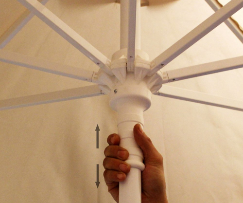 - Центральная опора Ø35 мм, с толщиной металла 2 мм, выполнена из алюминия. Алюминий окрашен и прошел специальную термообработку, которая повышает прочность и коррозионную стойкость зонта.