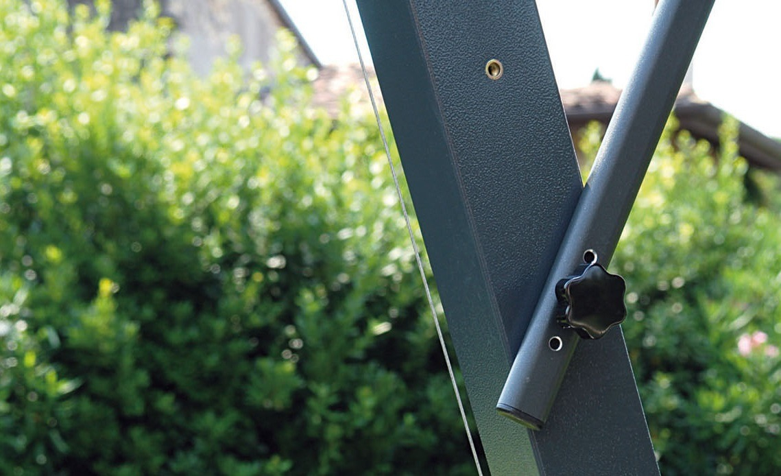 - Специальное крепление к опоре (Wind Stop) для лучшей устойчивости в ветренную погоду и для обеспечения наклона зонта.