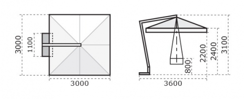 - высота до кромки открытого зонта: 2200 мм;