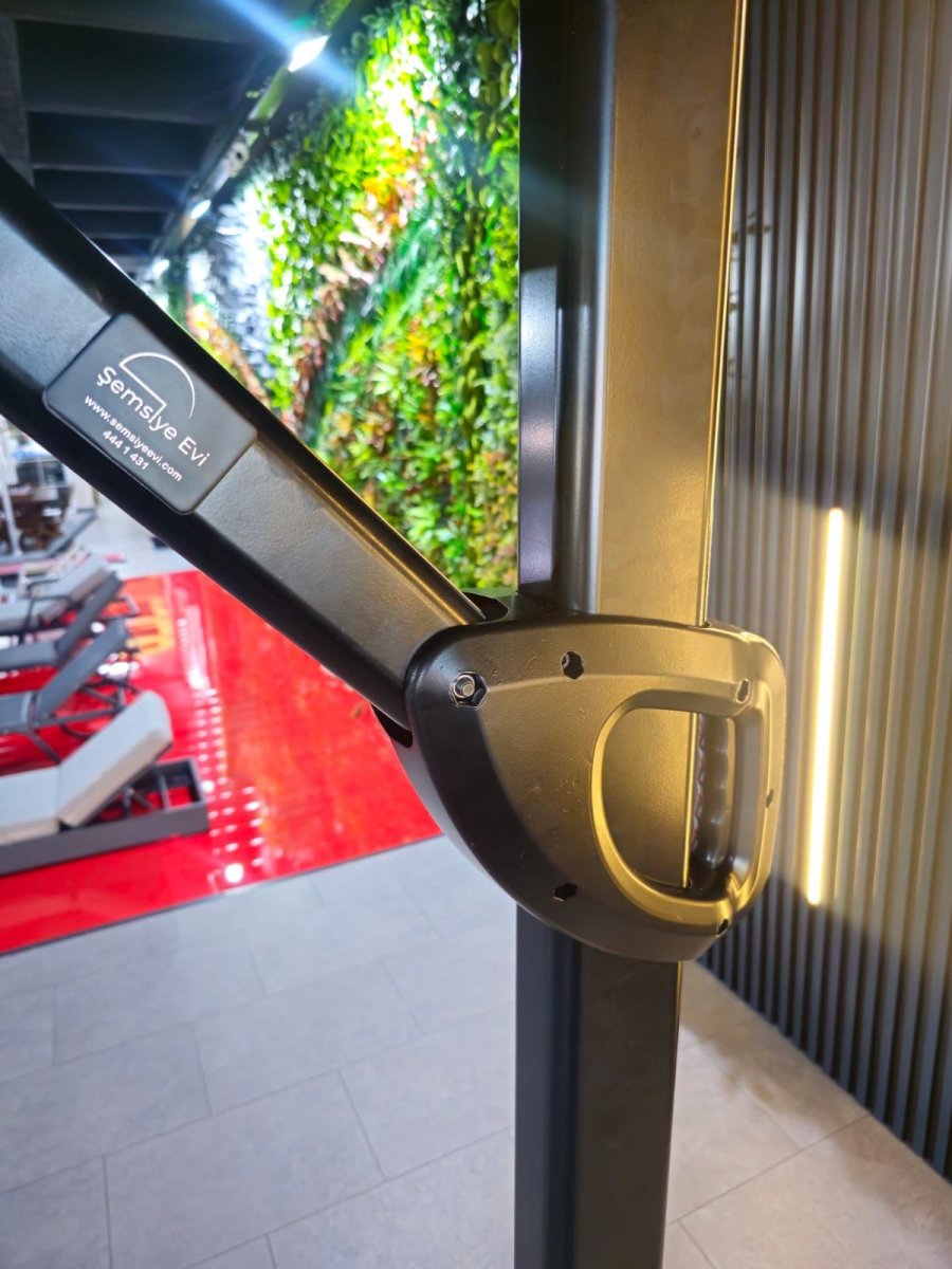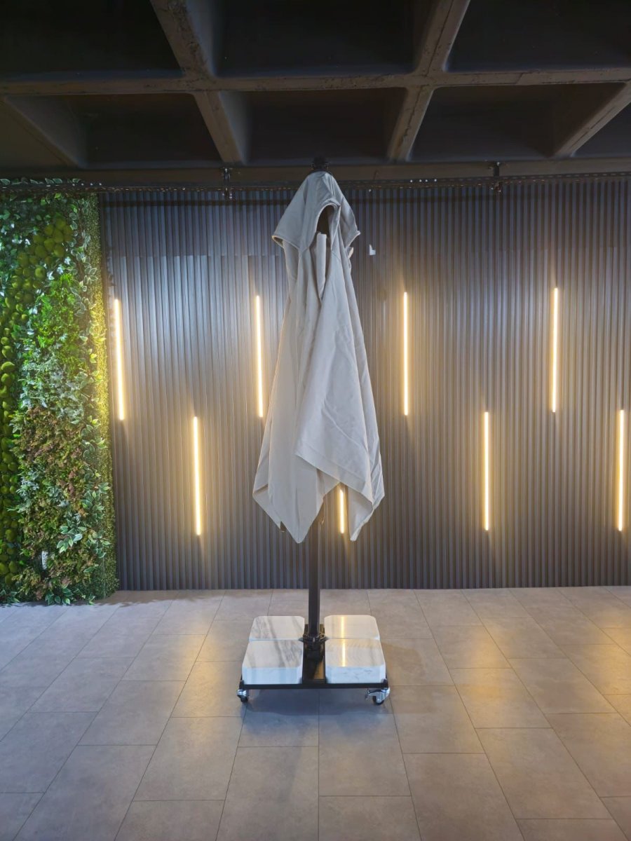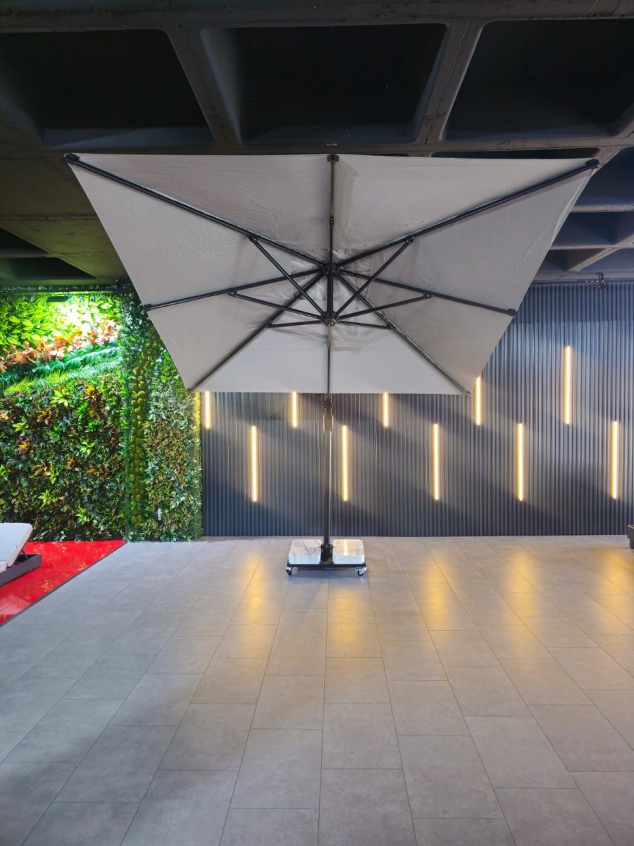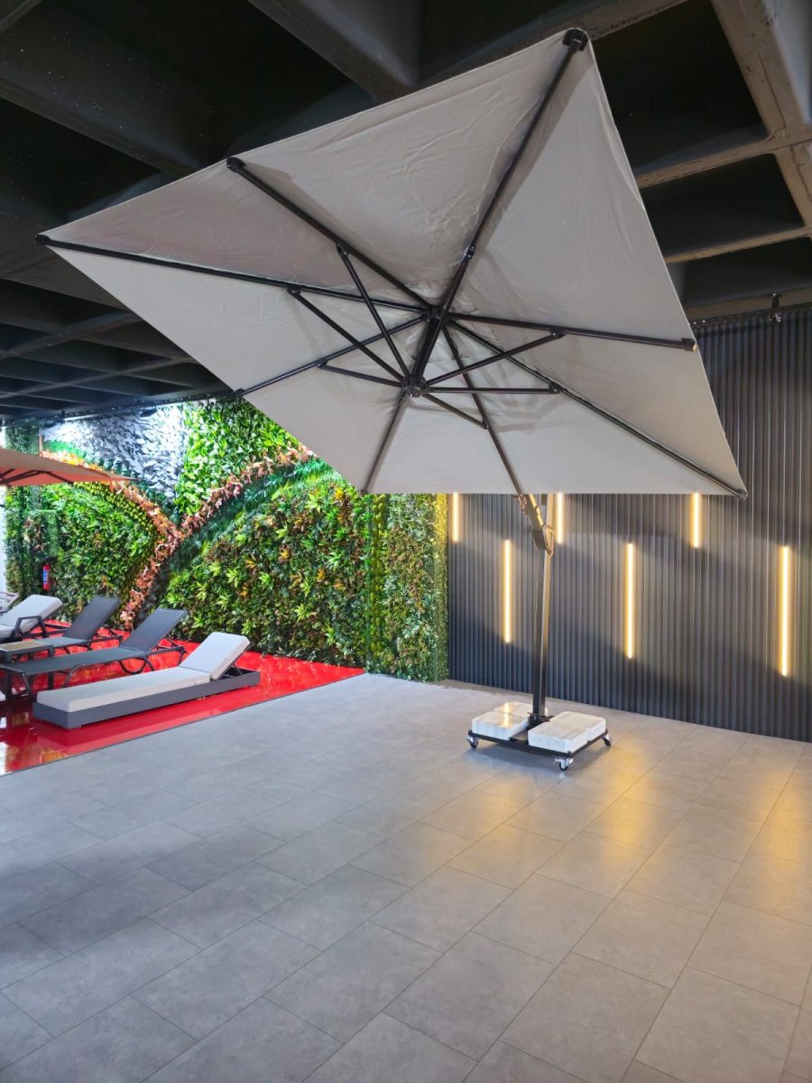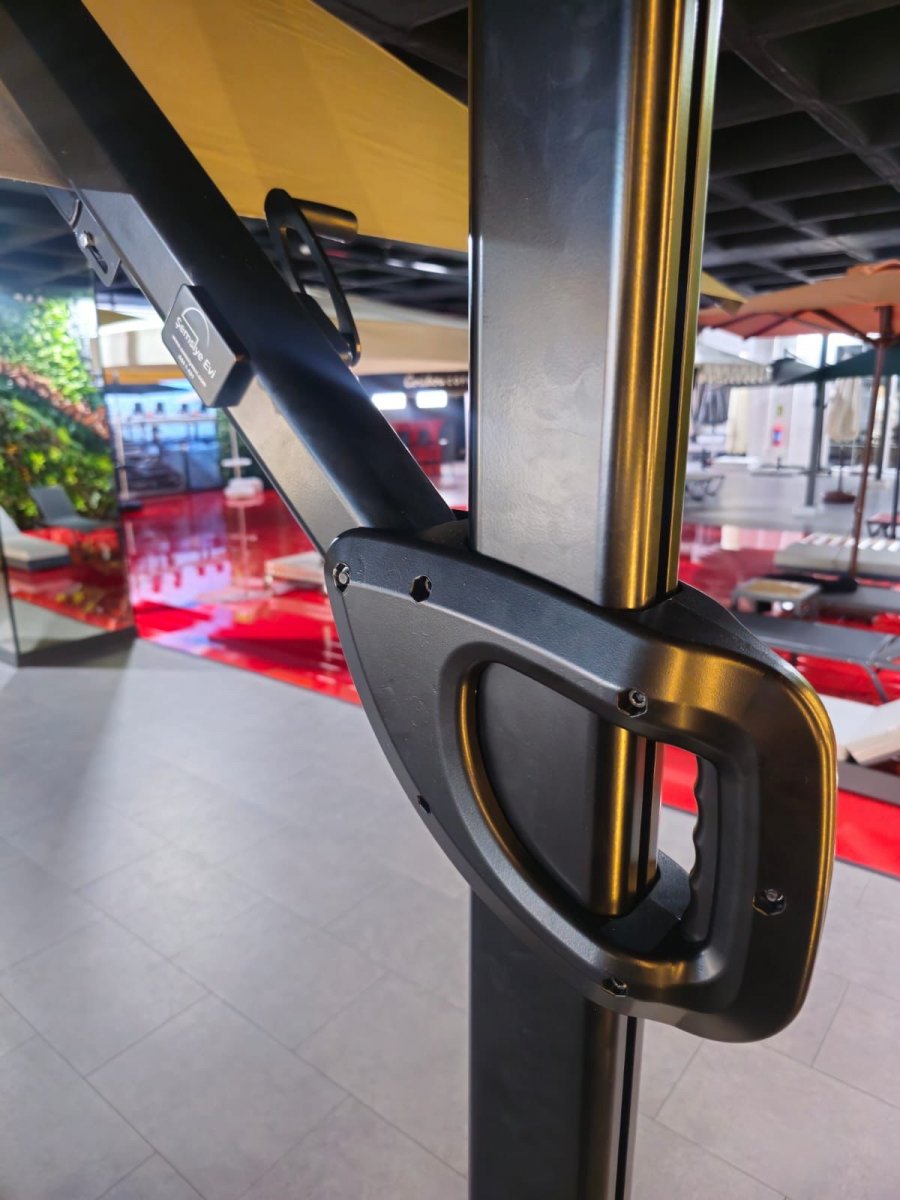 Banana Plus Premier - новейшая модель компании THEUMBRELA, сочетающая в себе высококачественные материалы, впечатляющие технологии и простое управление. Это особенный продукт для тех, кто ищет крутой дизайн, стильный внешний вид и функциональность среди зонтов с боковой опорой. Зонт легко открывается и закрывается при помощи рукоятки, а сам механизм блокируется для безопасности. Купол может подниматься под углом до 60°. Для того, чтобы закрыть или открыть зонт Banana Plus, не нужно двигать мебель под ним.